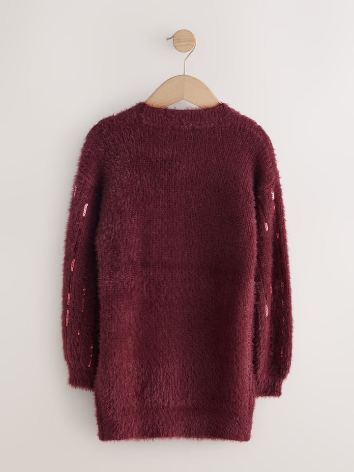 Burgundy Red Stripe Sequin Christmas Jumper Dress (3-16yrs)