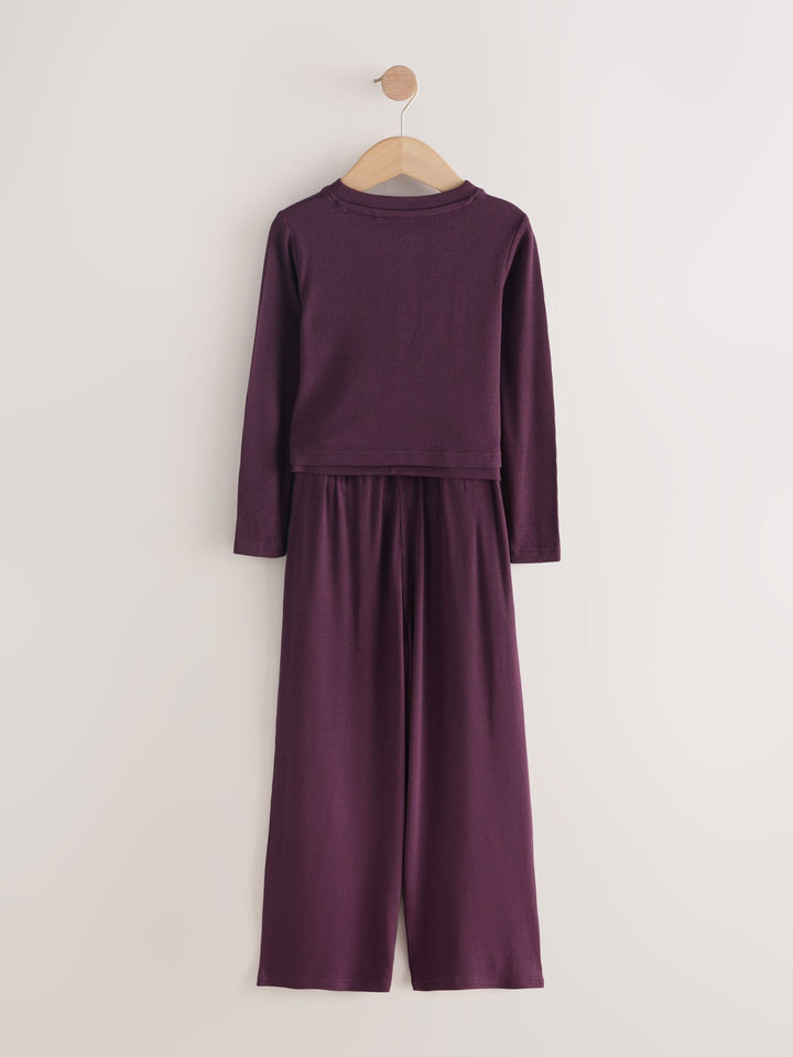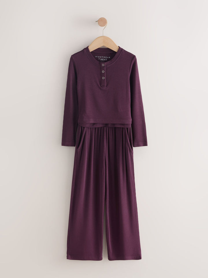 Burgundy Red Yoga Style Bottoms Button Through Pyjamas (6-16yrs)