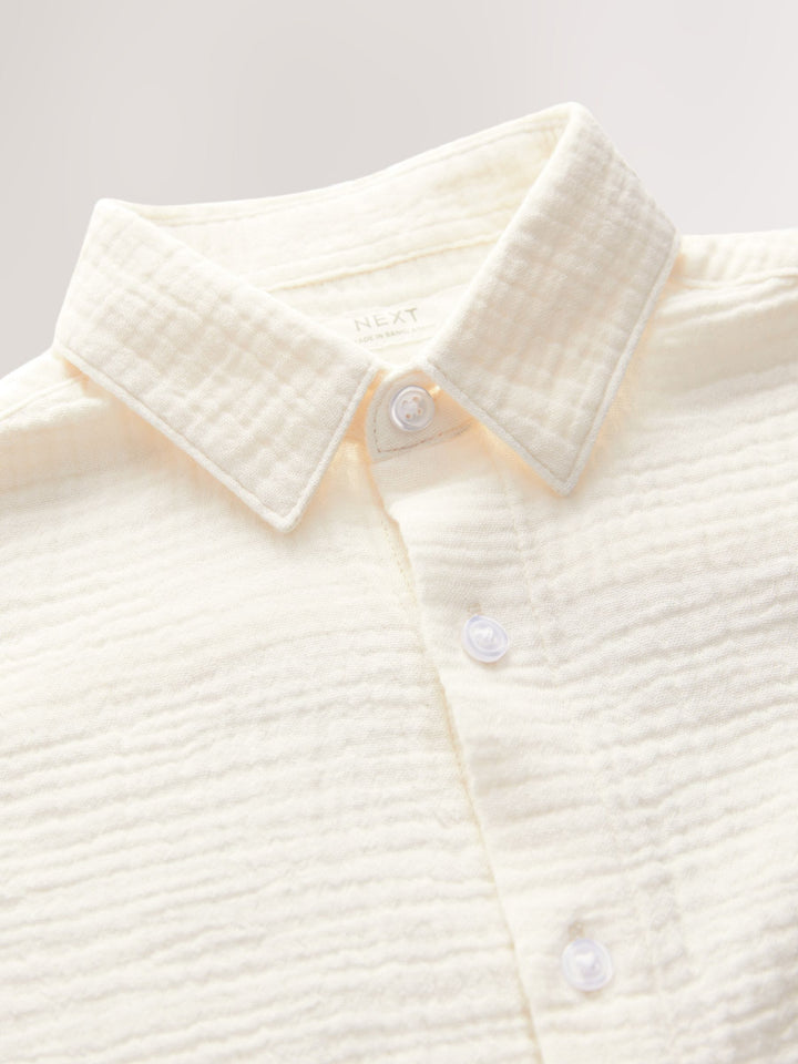 Buttermilk Double Cloth 100% Cotton Short Sleeves Textured Shirt (3-16yrs)
