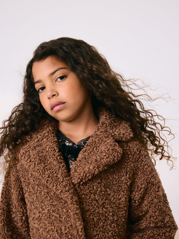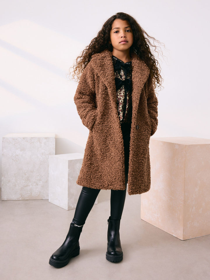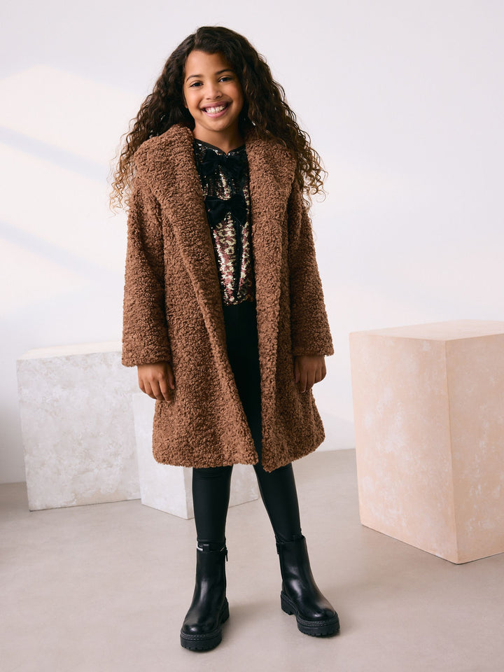 Camel Longline Teddy Borg Fleece Coat (3-16yrs)
