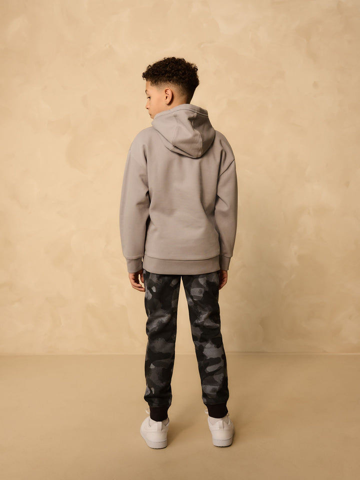 Keep them comfy and cool in this stylish joggers set. The camouflage-print joggers and graphic hoodie create an on-trend look, perfect for laid-back days. With a soft feel, hood and pockets, this set is designed for casual comfort. Camouflage-print joggers Graphic print hoodie Hooded Kangaroo pouch pocket Elasticated waistband and cuffs Machine washable. Hoodie 80% Cotton, 20% Recycled polyester. Jogger 100% Cotton. Country of Origin: Bangladesh