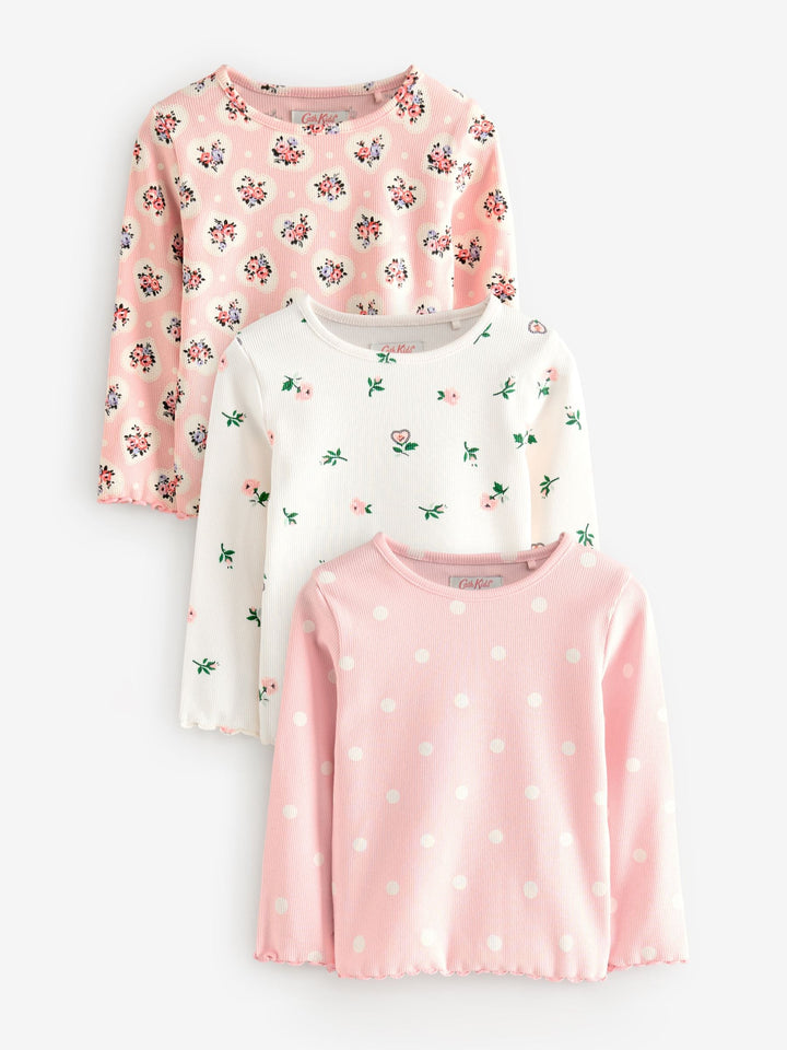 Cath Kidston Pink Floral Long Sleeve Ribbed T-Shirts 3 Pack (3mths-7yrs)