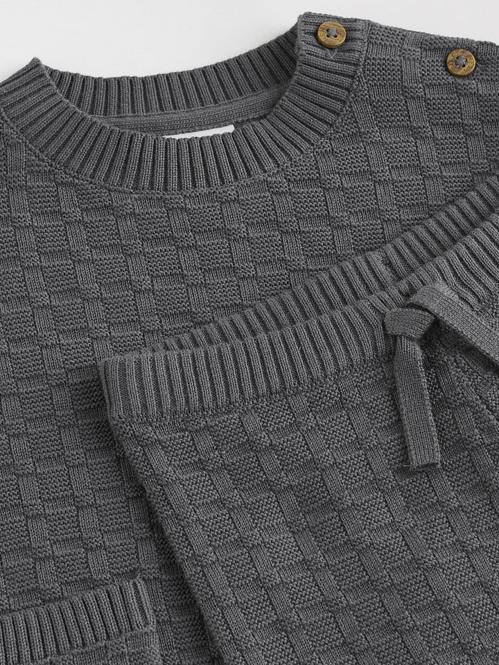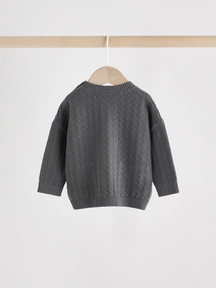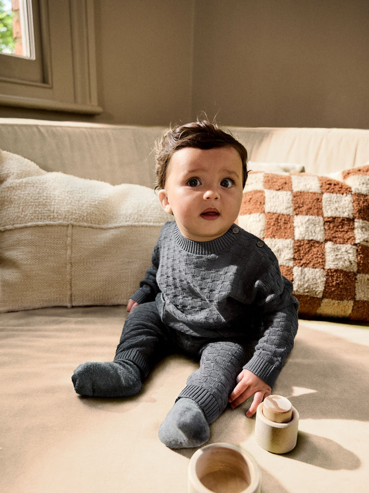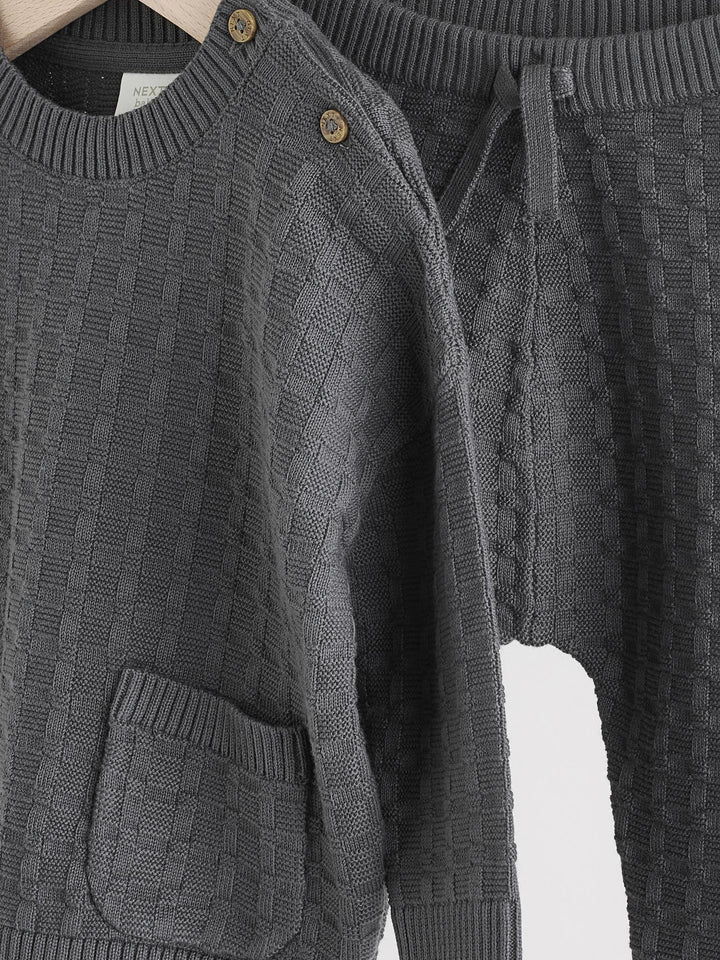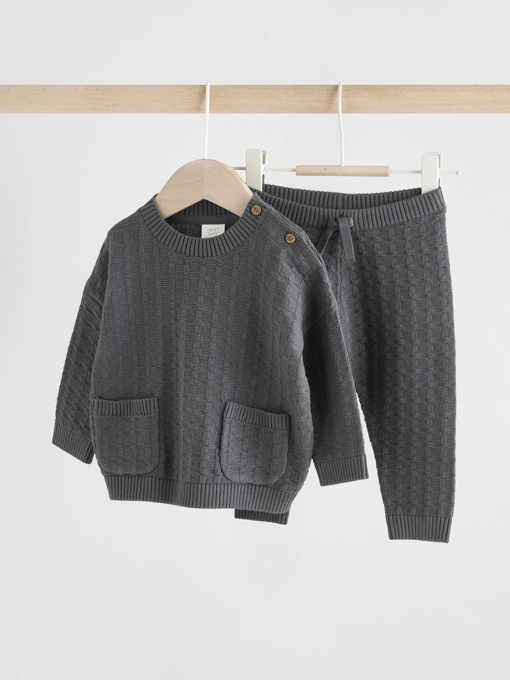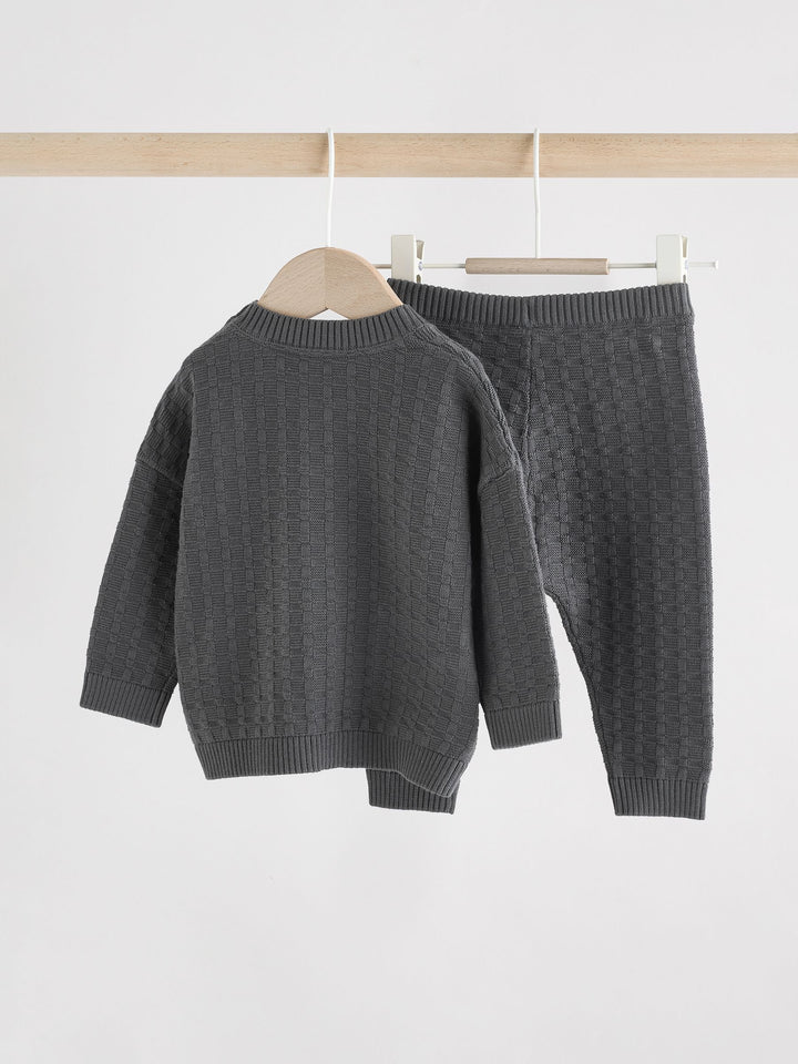 Charcoal Grey Baby Textured Knitted 100% Cotton Jumper and Leggings Set (0mths-3yrs)