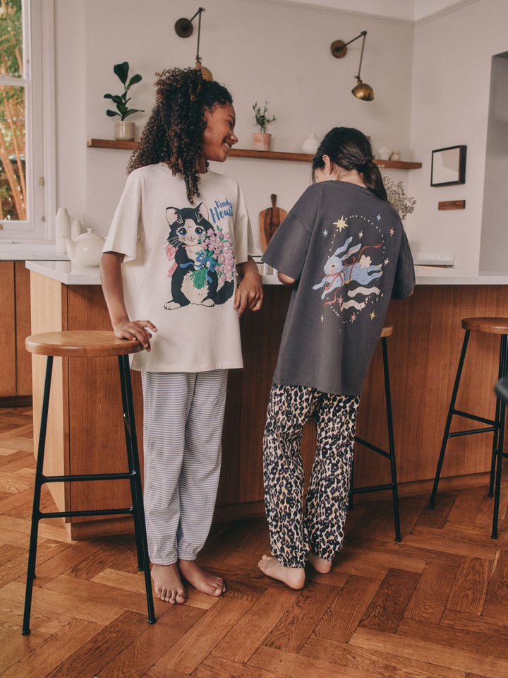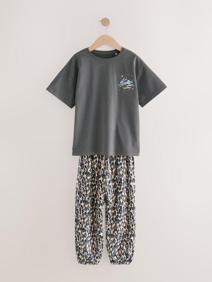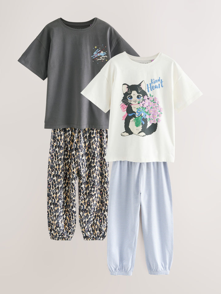 Charcoal Grey Cat Print Jogger Pyjamas 2 Pack (3-16yrs)