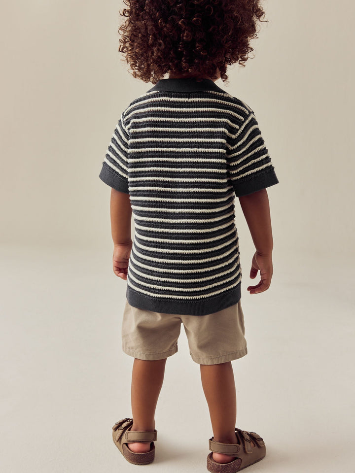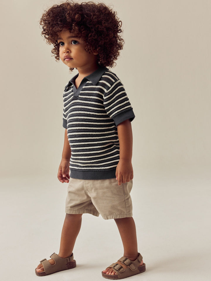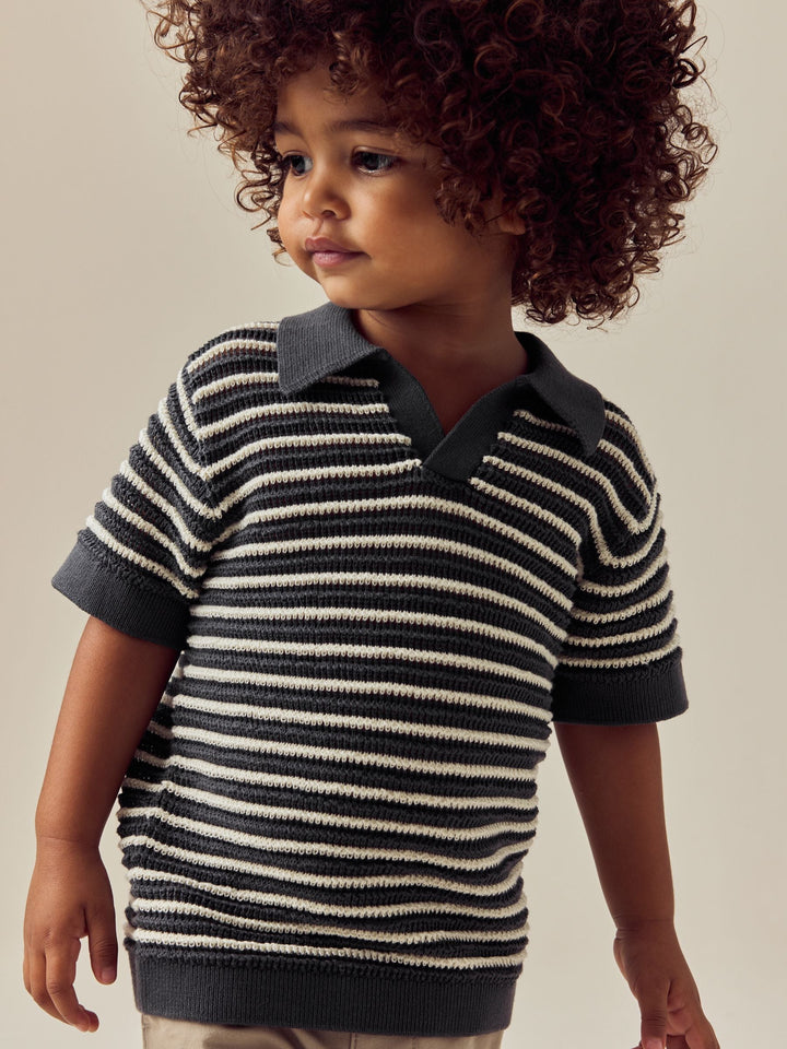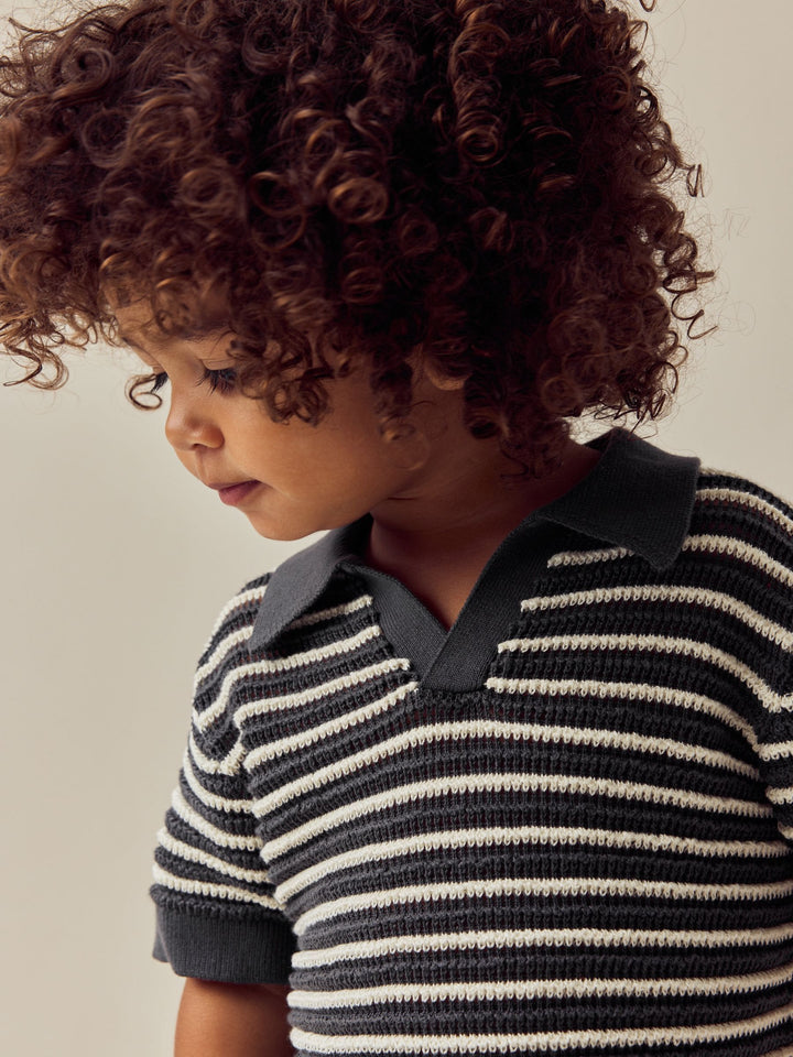 Charcoal Grey Stripe Short Sleeve Trophy Neck 100% Cotton Polo Shirt (3mths-7yrs)