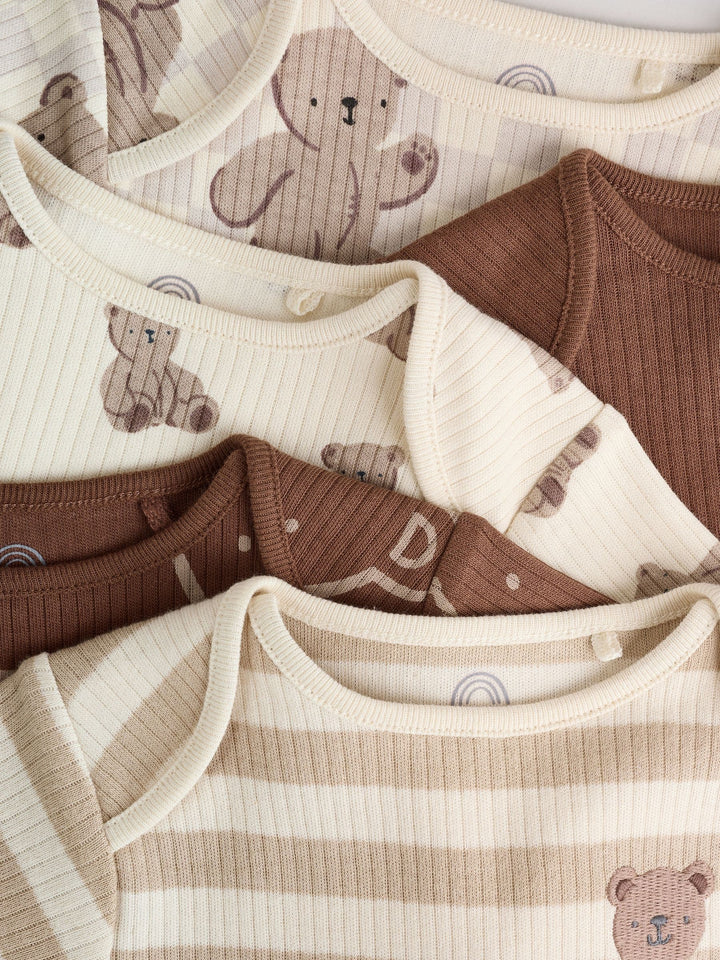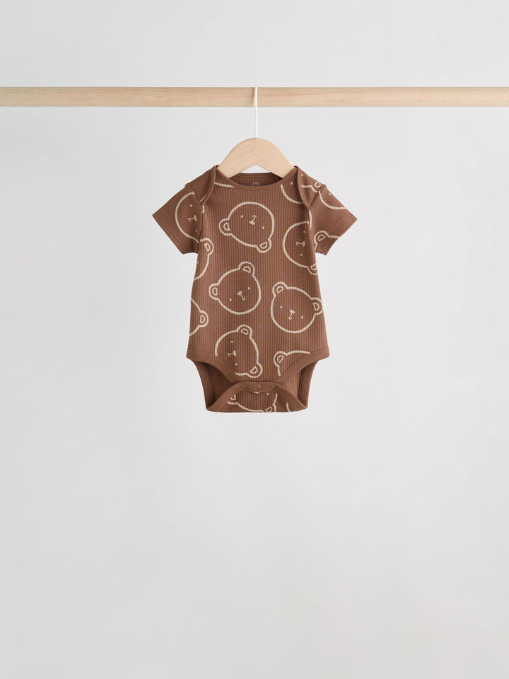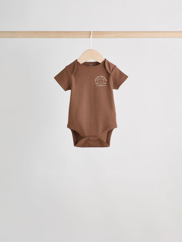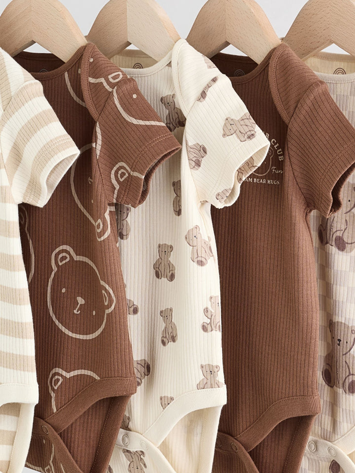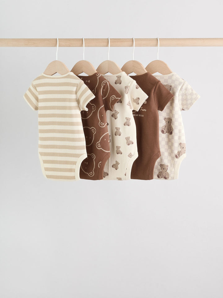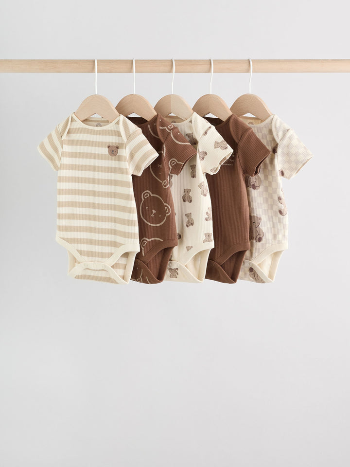 Chocolate Brown Baby Short Sleeve Bodysuits 5 Pack