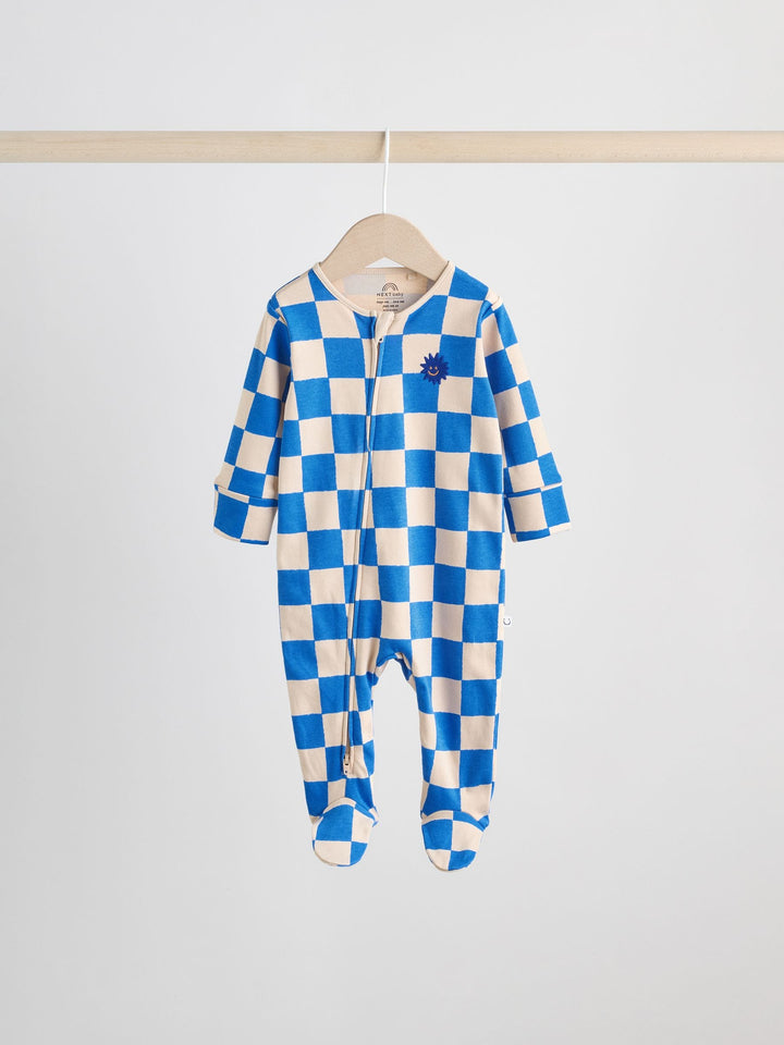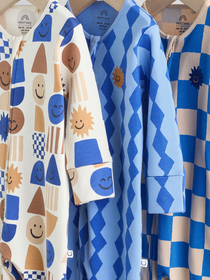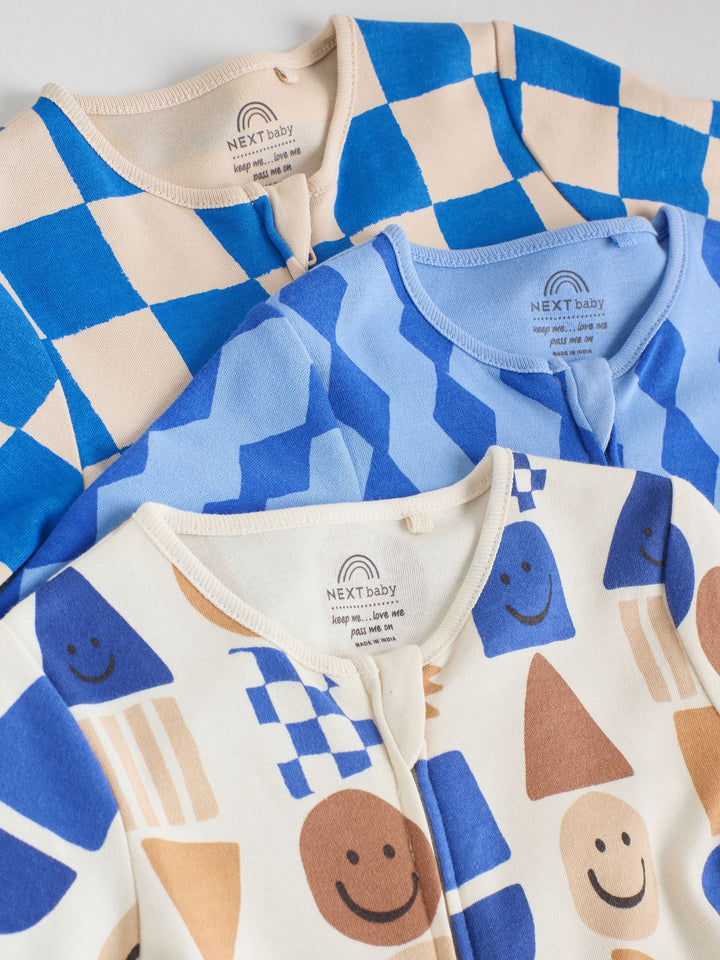 Cobalt Blue Baby Two Way Zip Sleepsuits 3 Pack (0-2yrs)