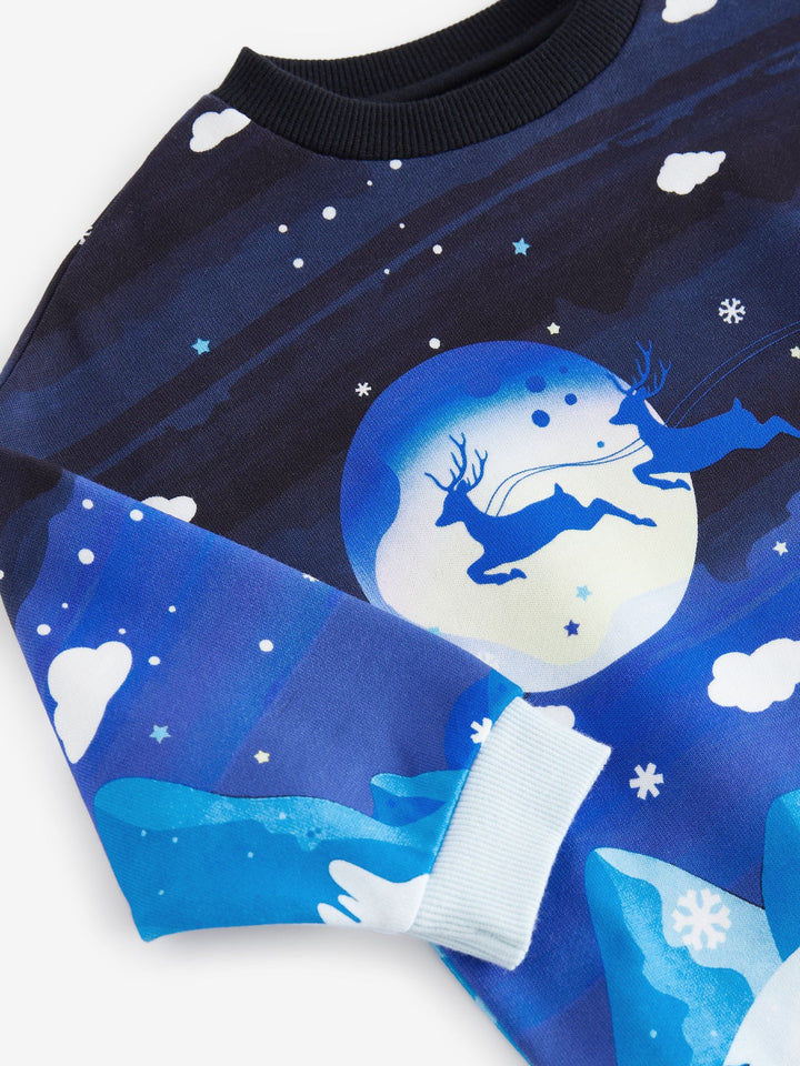 Navy Reindeer Scene Christmas Crew Neck 100% Cotton Sweatshirt immediate