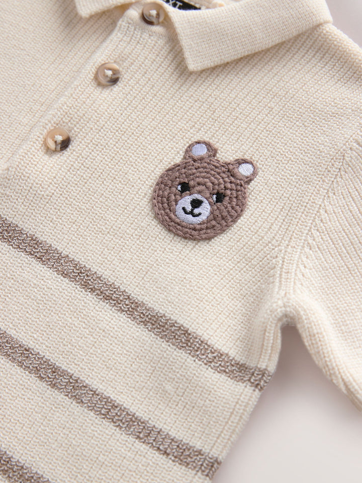 Neutral Bear Button Neck Knitted 100% Cotton Polo Shirt immediate