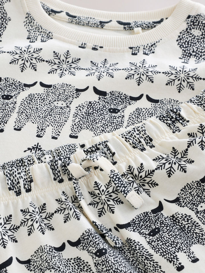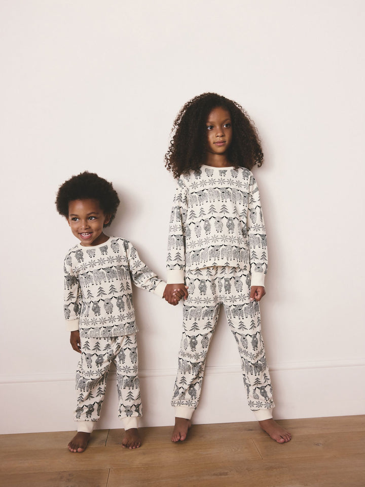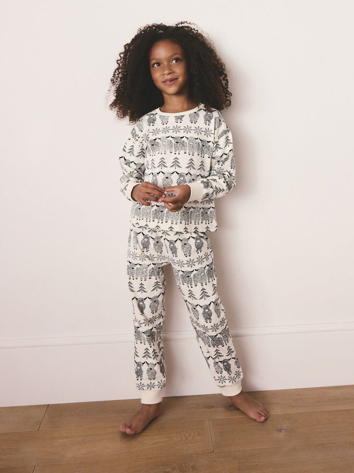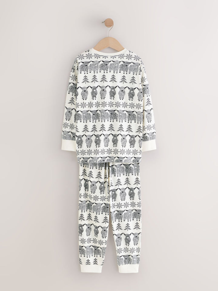 Cream/Black Hamish Fairisle Pattern Single Xmas Pyjamas (9mths-16yrs)