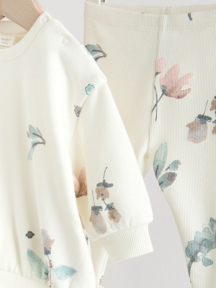 Cream Floral Baby Sweater and Joggers Set 2 Piece (0mths-2yrs)