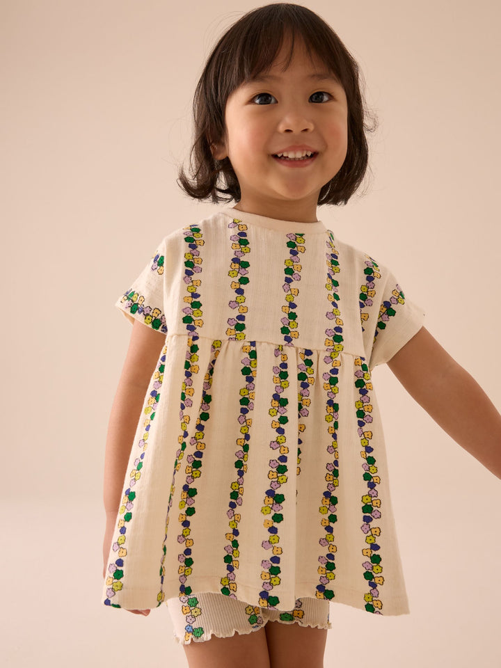 Cream Flowers Short Sleeve Peplum Top and Cycle Shorts Set (3mths-7yrs)