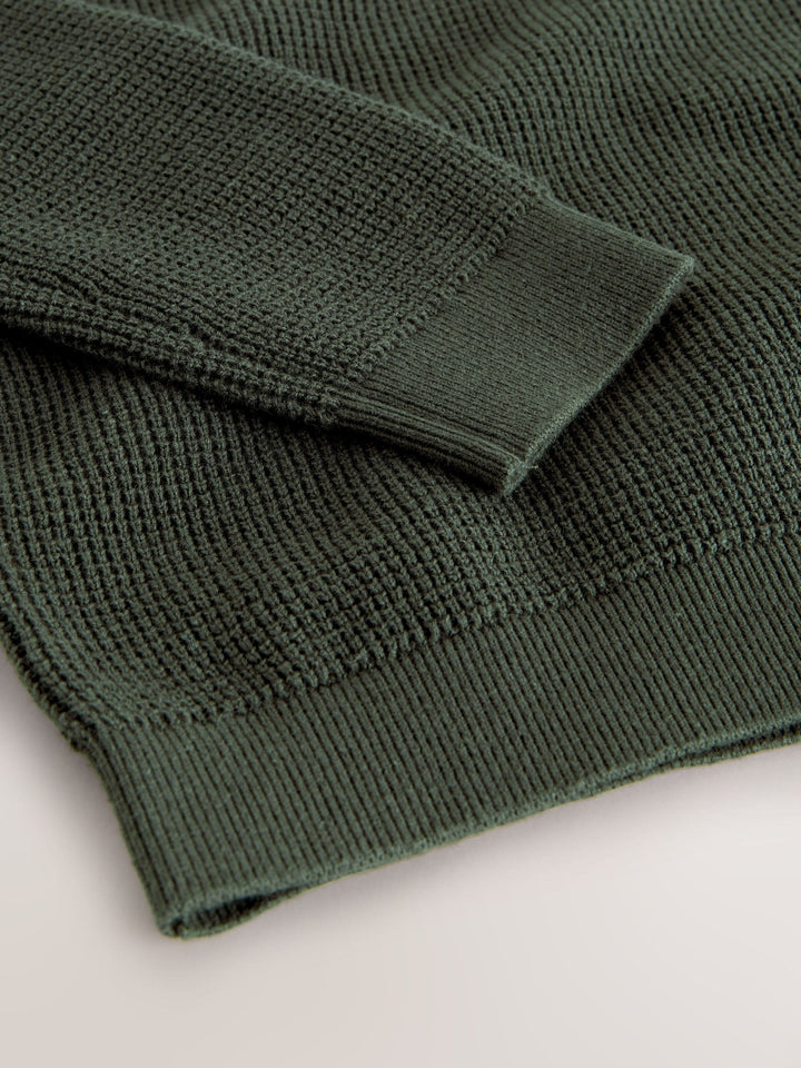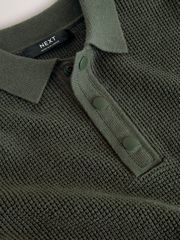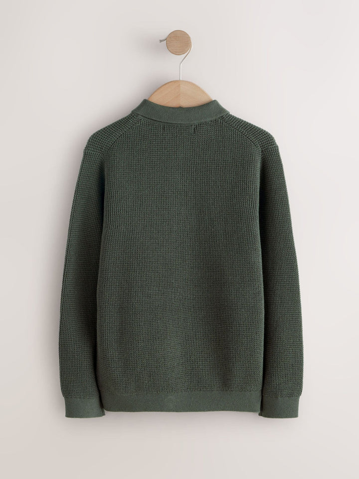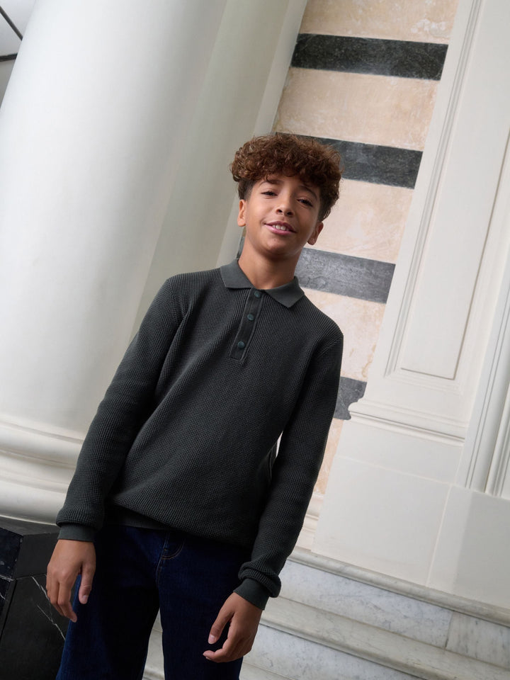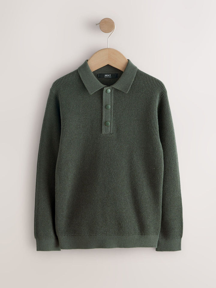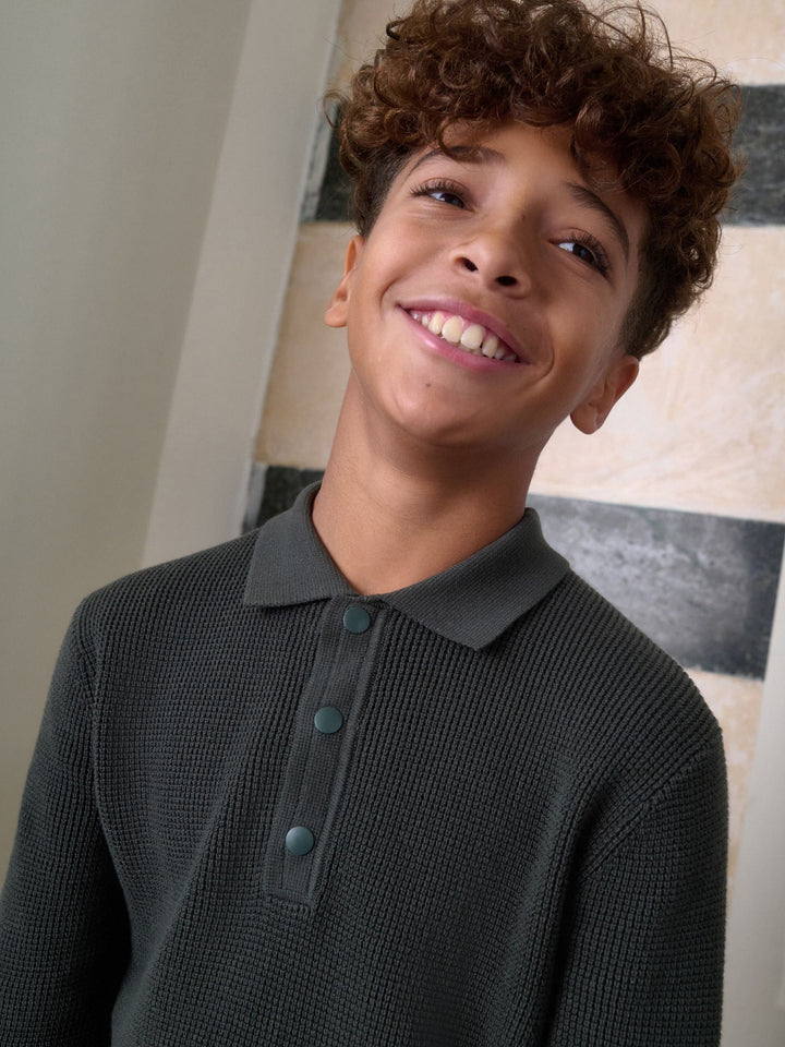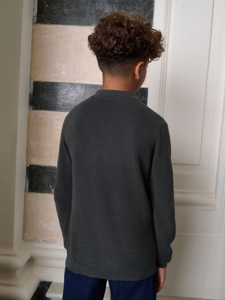 Dark Green Long Sleeve Textured Polo Shirt (3-16yrs)