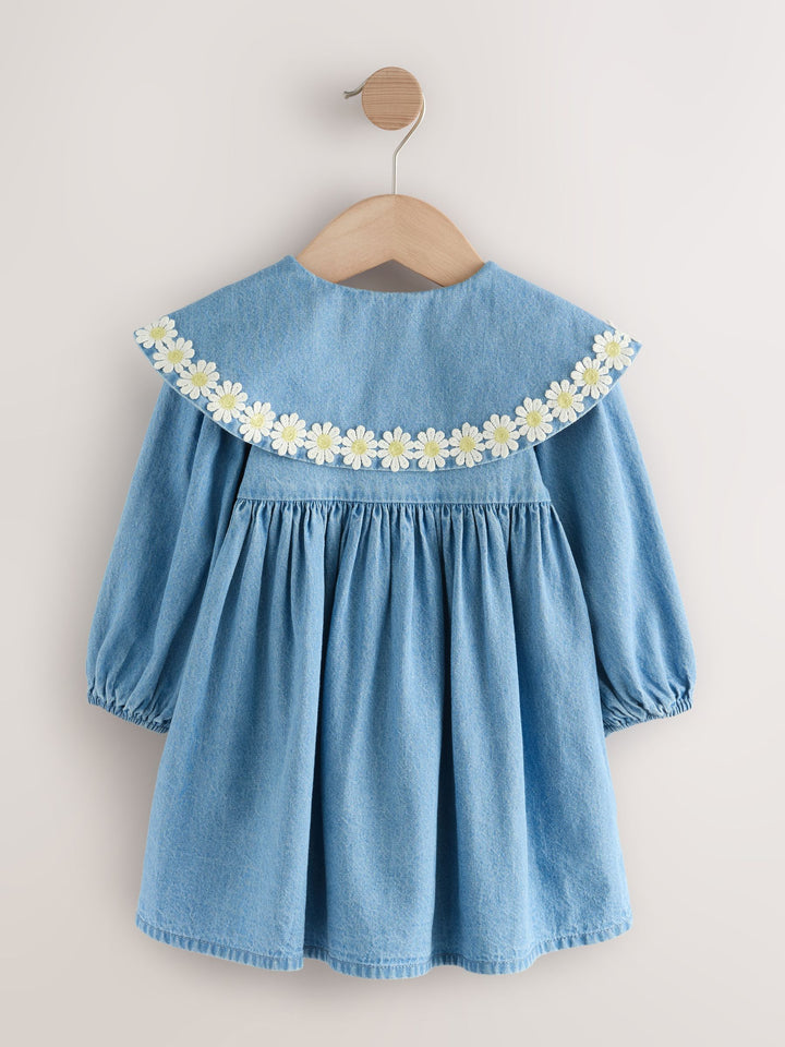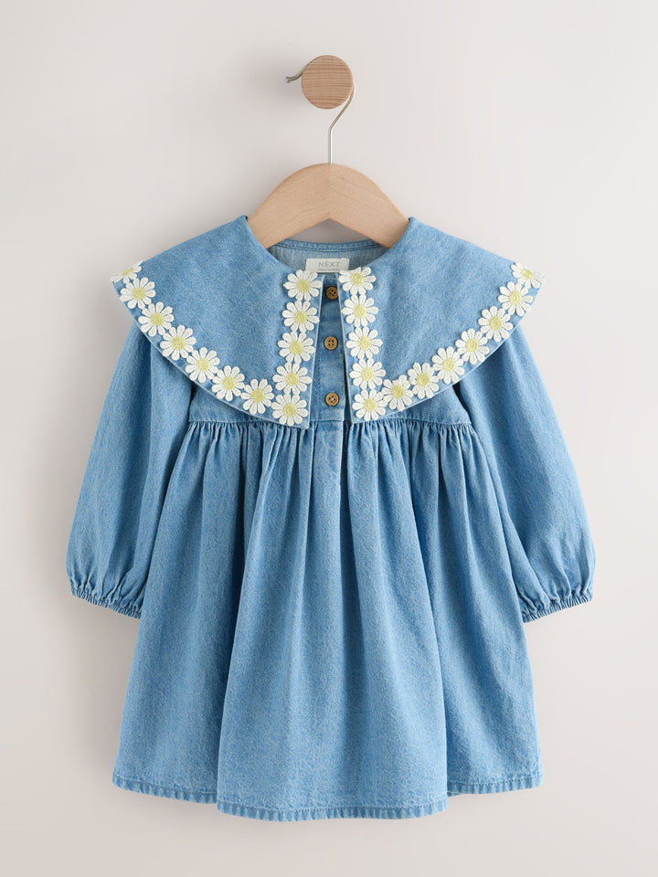 This gorgeous dress is perfect for summer, featuring collar detailing with a daisy trim, a button fastening to the front and long sleeves with elasticated sleeve cuffs, made from pure cotton. 100% cotton Collar detail Daisy trim Button detailing Elasticated sleeve cuffs 100% Cotton. Country of Origin: India