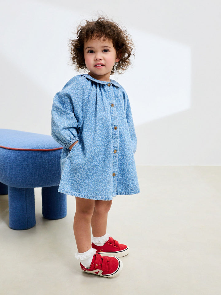 Dress your little one in this charming shirt dress, a perfect blend of comfort and style. Made from a soft cotton fabric, this dress features beautiful designs on the front. With a classic collar and button-through front for easy dressing, the generous cut is perfect for a special occasion or everyday wear. Soft 100% cotton fabric Button-through front for easy dressing Shirt dress style Long puff sleeves Frill detail at the collar and cuffs 100% Cotton. Country of Origin: Bangladesh