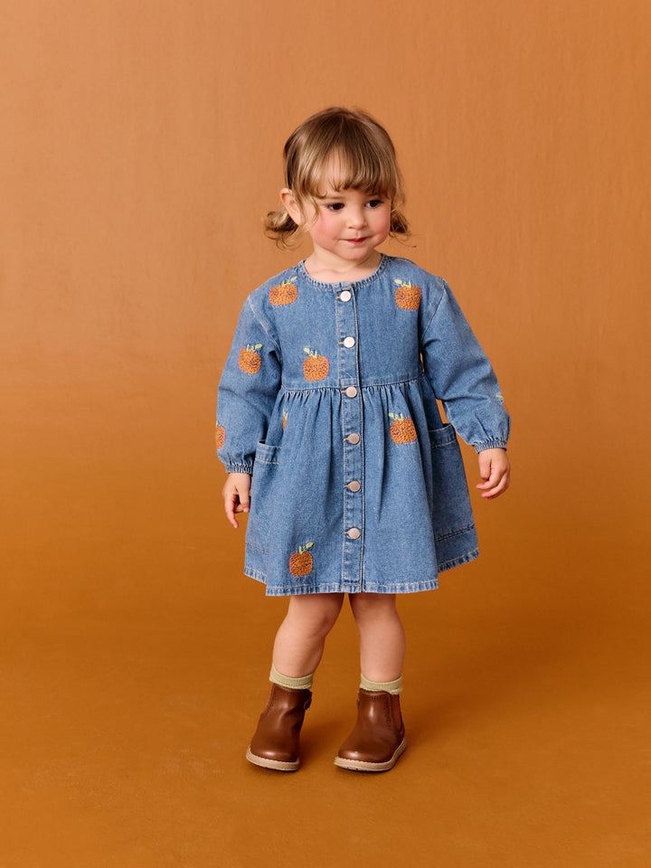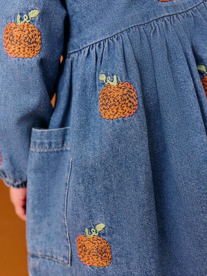 Denim Pumpkin Embroidered Long Sleeve Dress (3mths-8yrs)