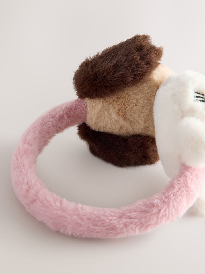 Keep them warm and cosy on cooler days with these playful cat and dog ear muffs. The fun 3D character ear pads and super soft faux fur fabric provide a comfortable and snug fit, while the pink and brown colours add a playful touch. They're a perfect accessory for any animal lover. 3D character ear pads Soft faux fur fabric Cat and dog designs Ear muffs Padded ears Machine washable. 70% Recycled polyester, 30% Polyester. Country of Origin: China