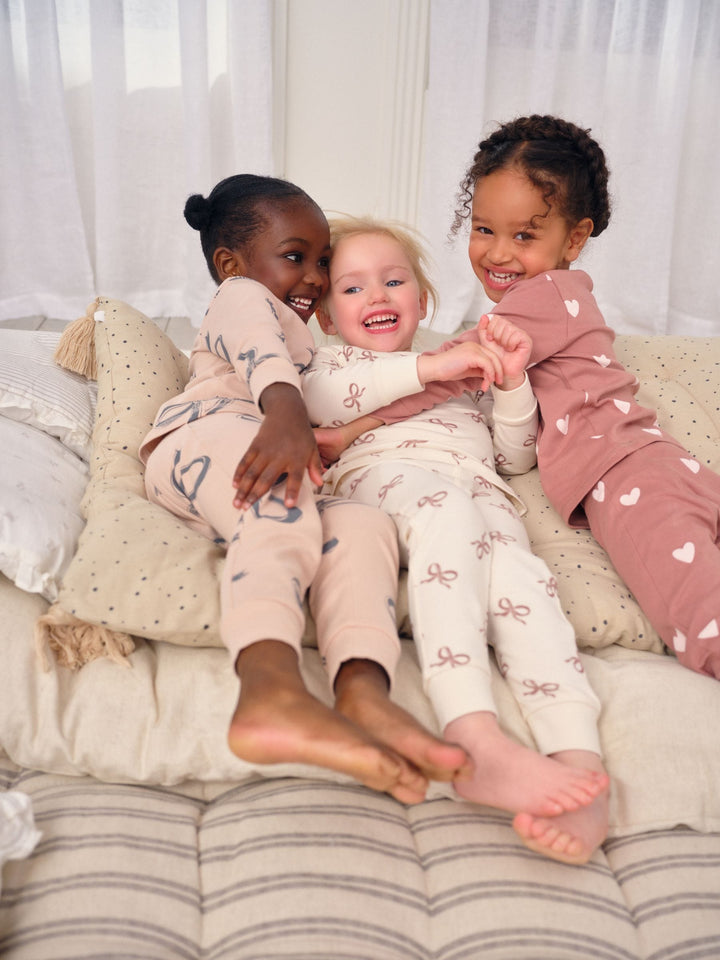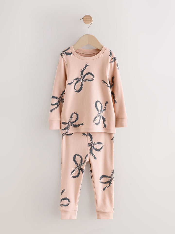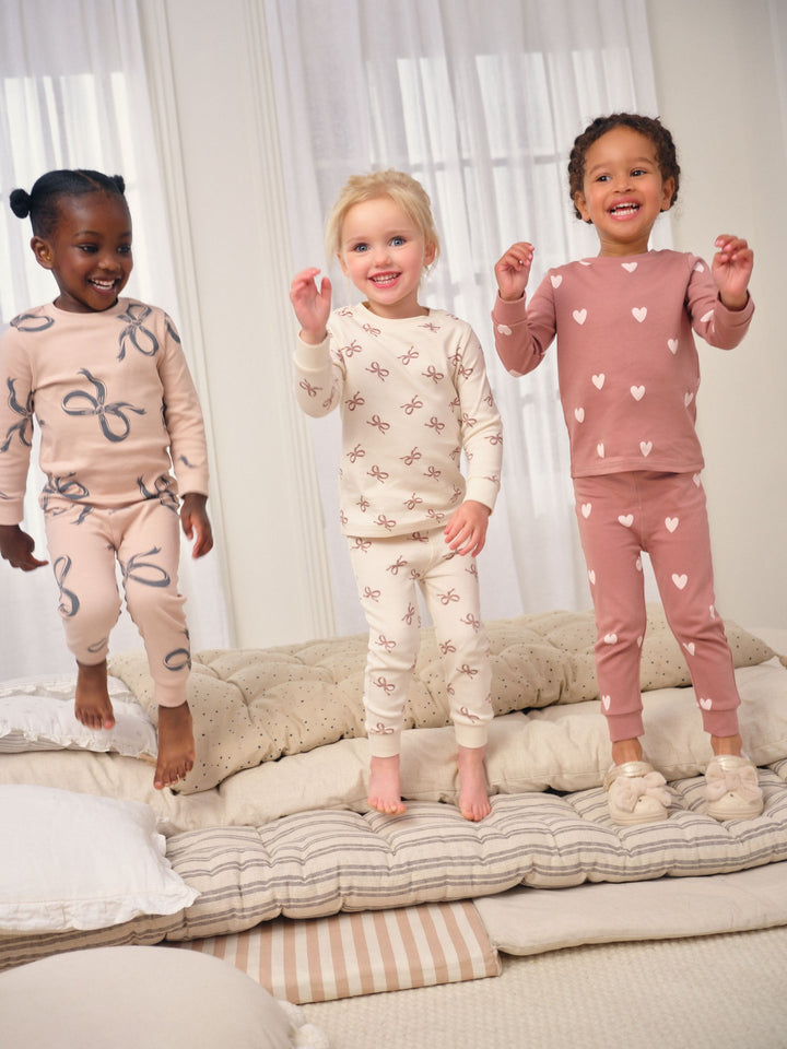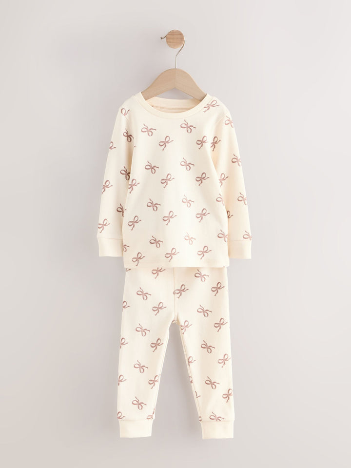 Ecru/Brown Bow Print Snuggle Pyjamas 3 Pack (9mths-16yrs)