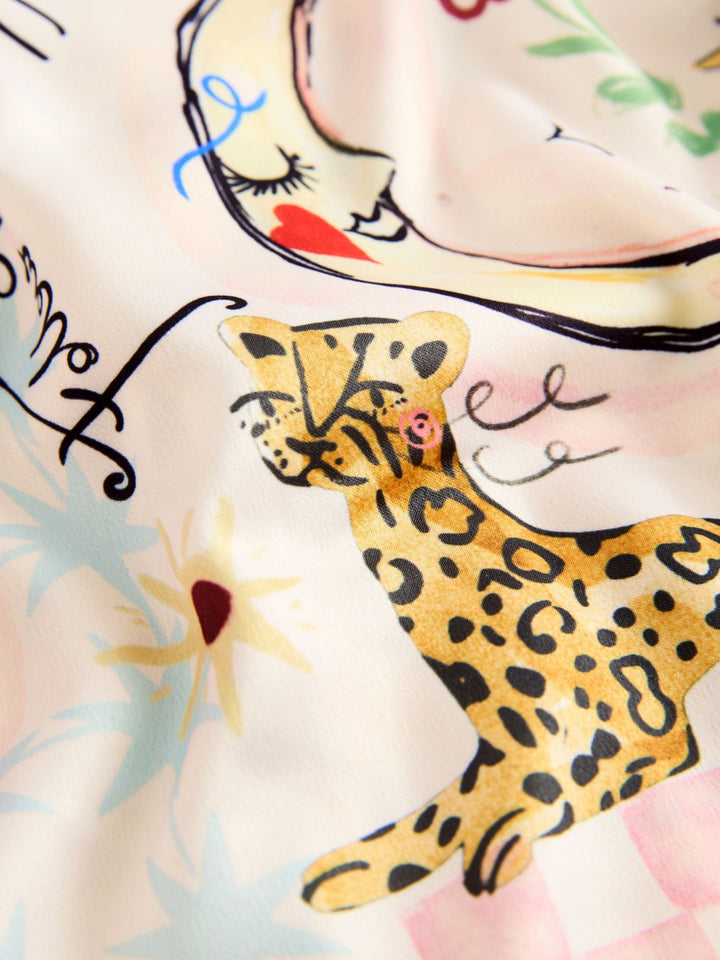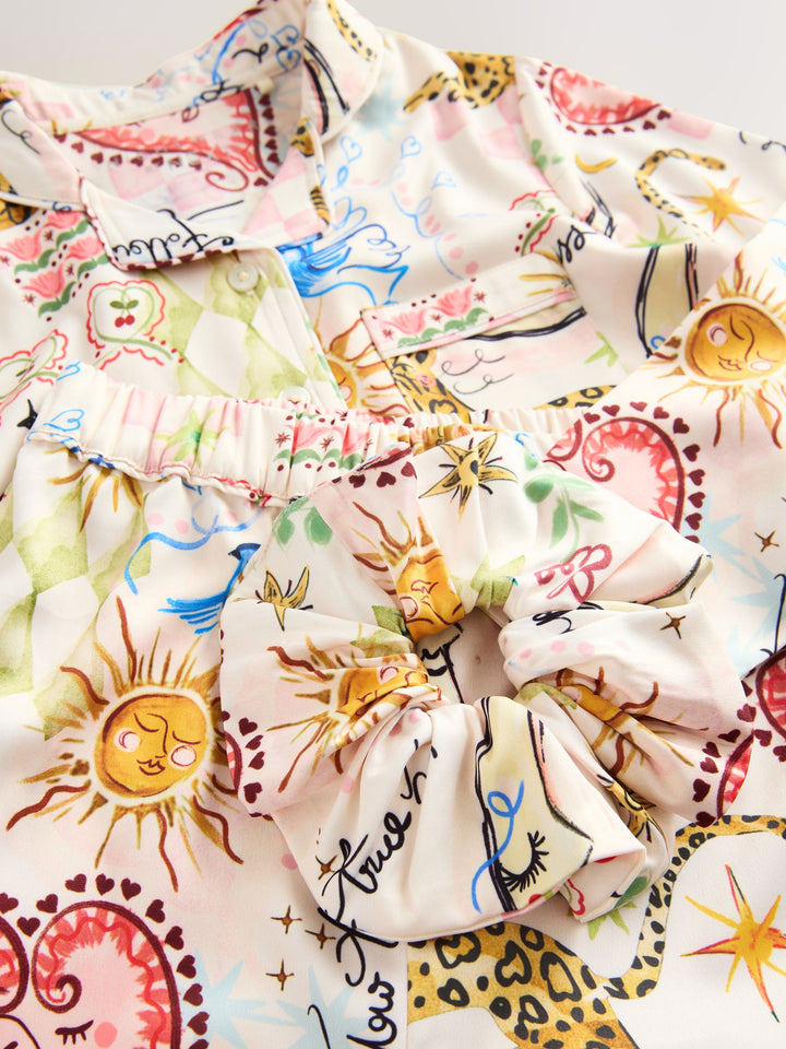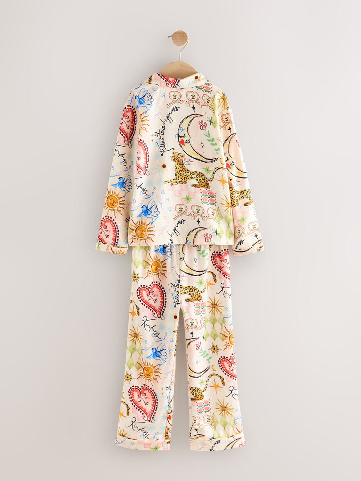 Ecru Celestial Print Satin Button Through Pyjamas (6-16yrs)