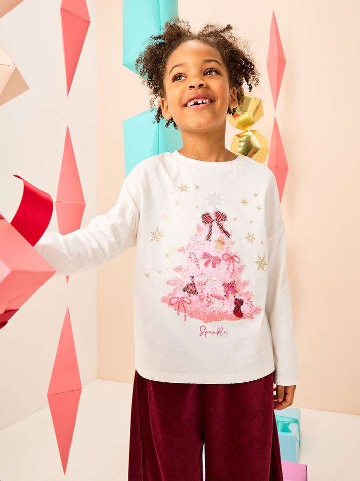 Ecru Christmas Tree Long Sleeve Top (3-16yrs)