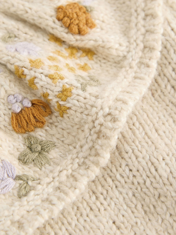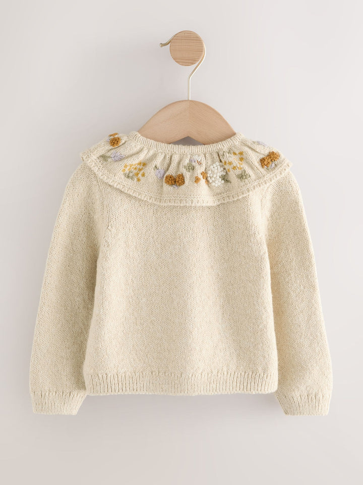 Ecru Floral Print Embellished Collar Cardigan (3mths-7yrs)