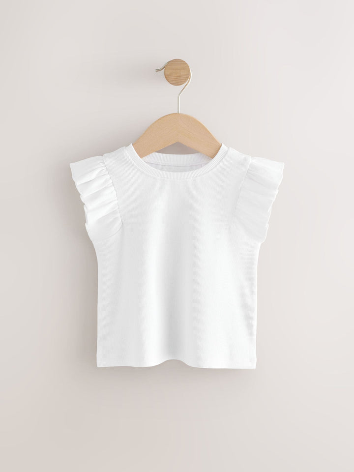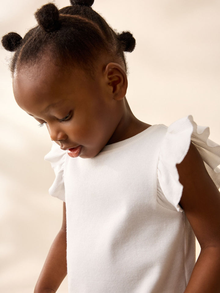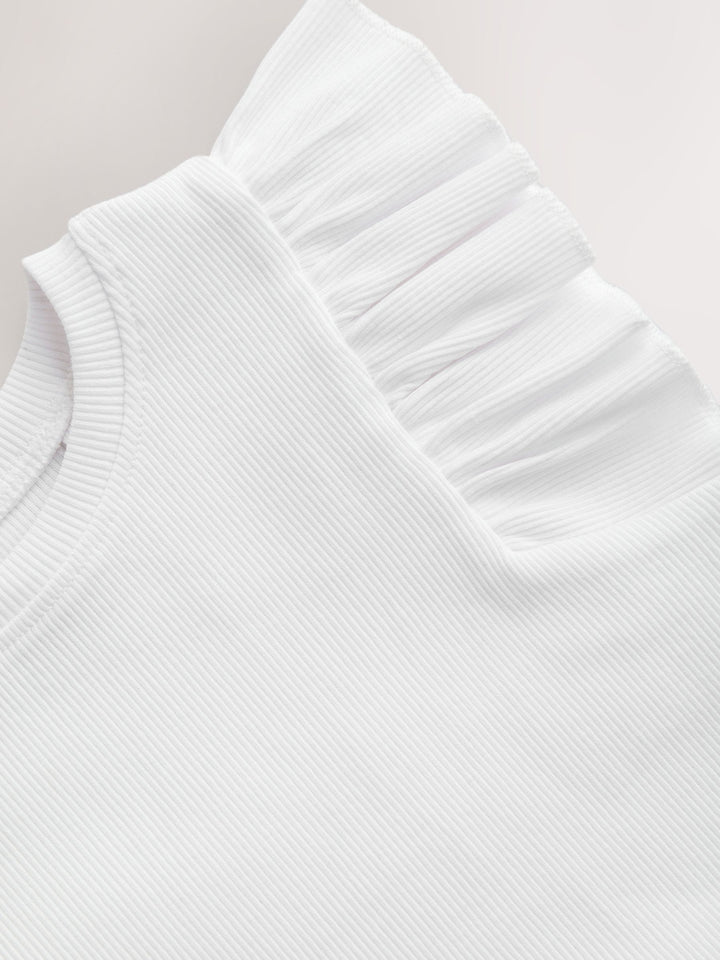 Ecru Frill Shoulder Ribbed Vest (3mths-7yrs)