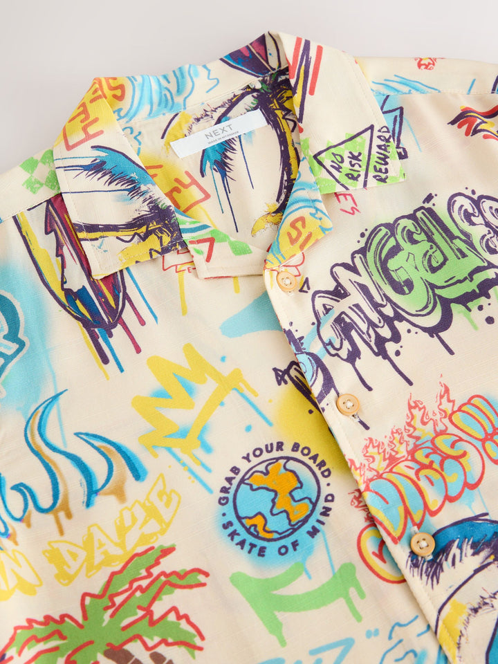 Ecru Graffitti Short Sleeve Printed Shirt (3-16yrs)