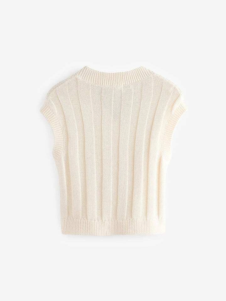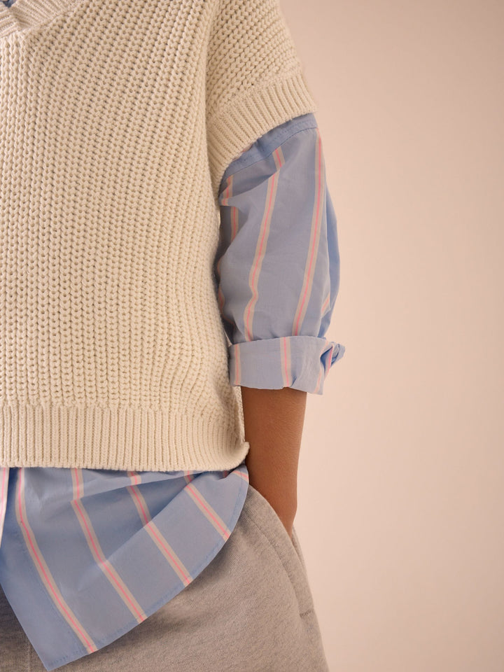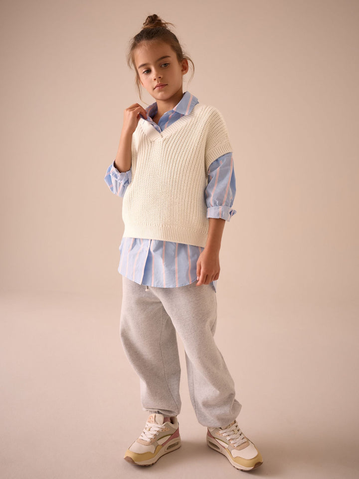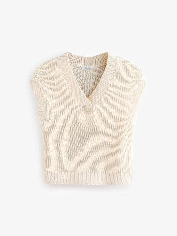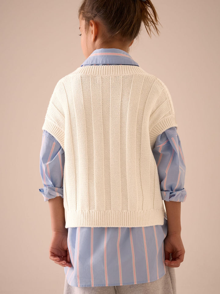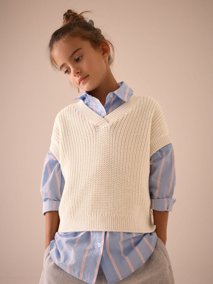 Designed for your stylish mini-me, our knitted tank top is a statement addition to their cold weather wear. Designed in a slouchy fit with v-neckline and slits to hem. Knitted tank Slouchy fit V-neck 50% Cotton, 50% Acrylic. Country of Origin: Bangladesh