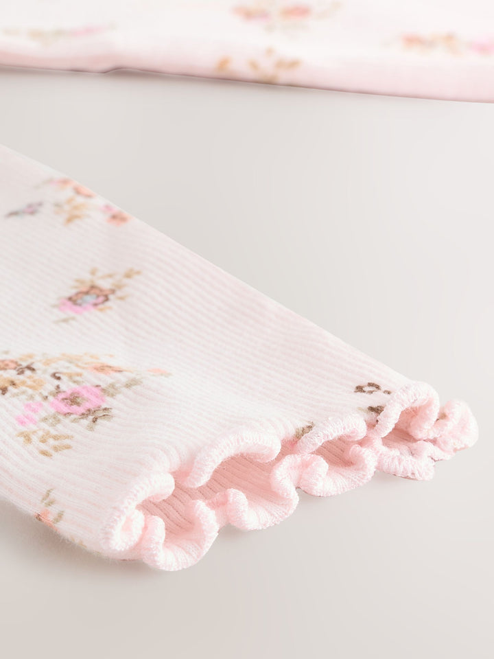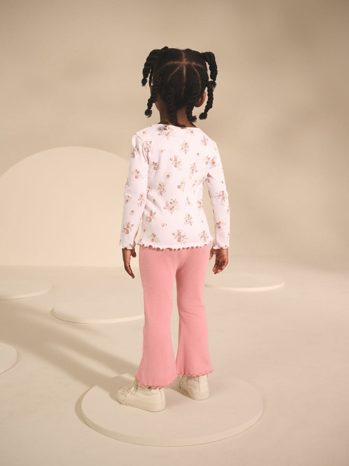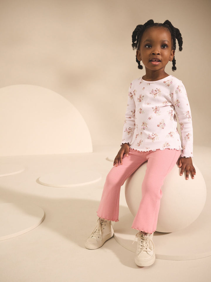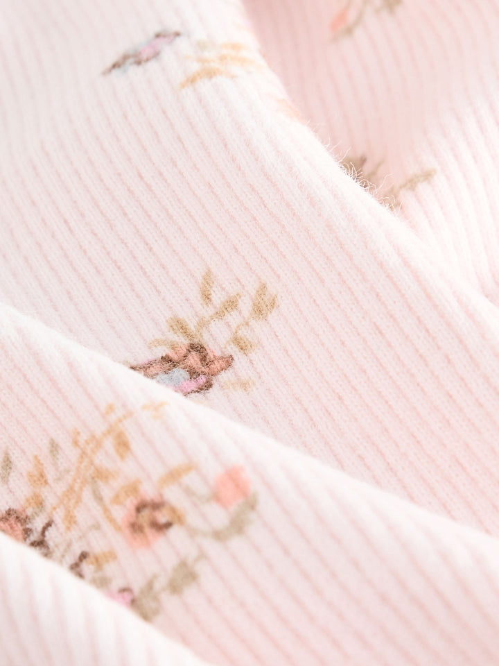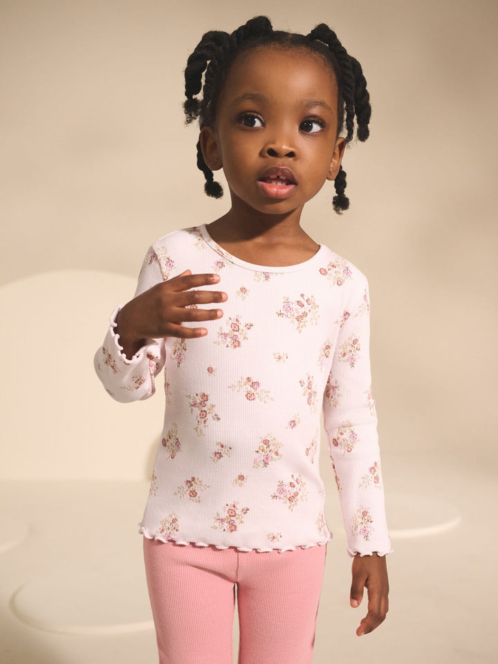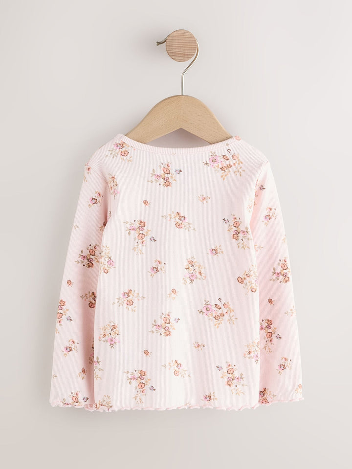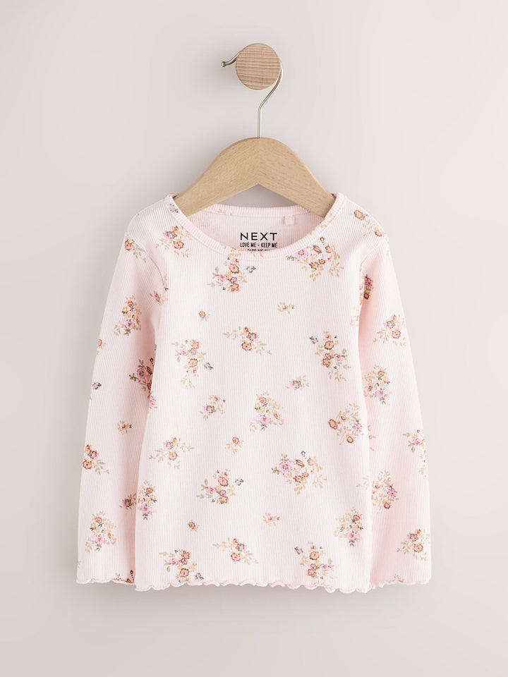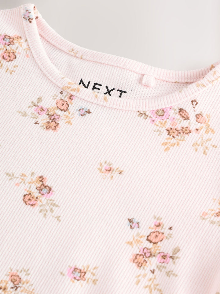Ecru & Pink Ditsy Floral Rib Long Sleeve T-Shirt (3mths-7yrs)