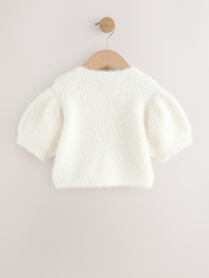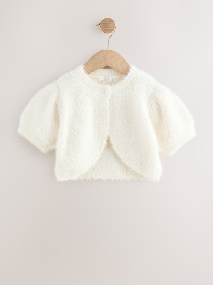 Ecru Short Sleeve Fluffy Shrug (12mths-16yrs)