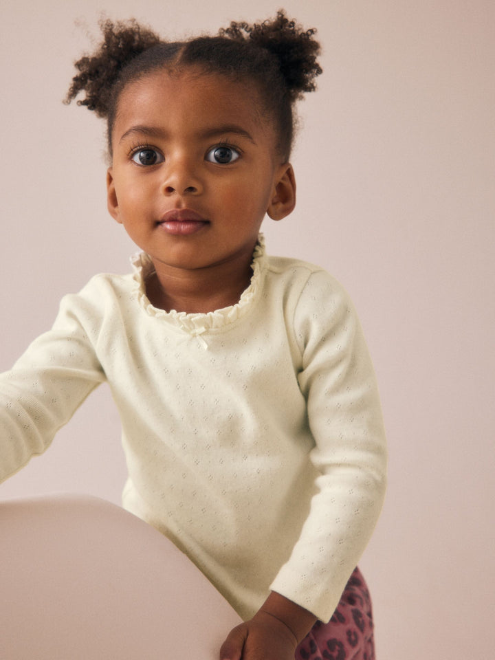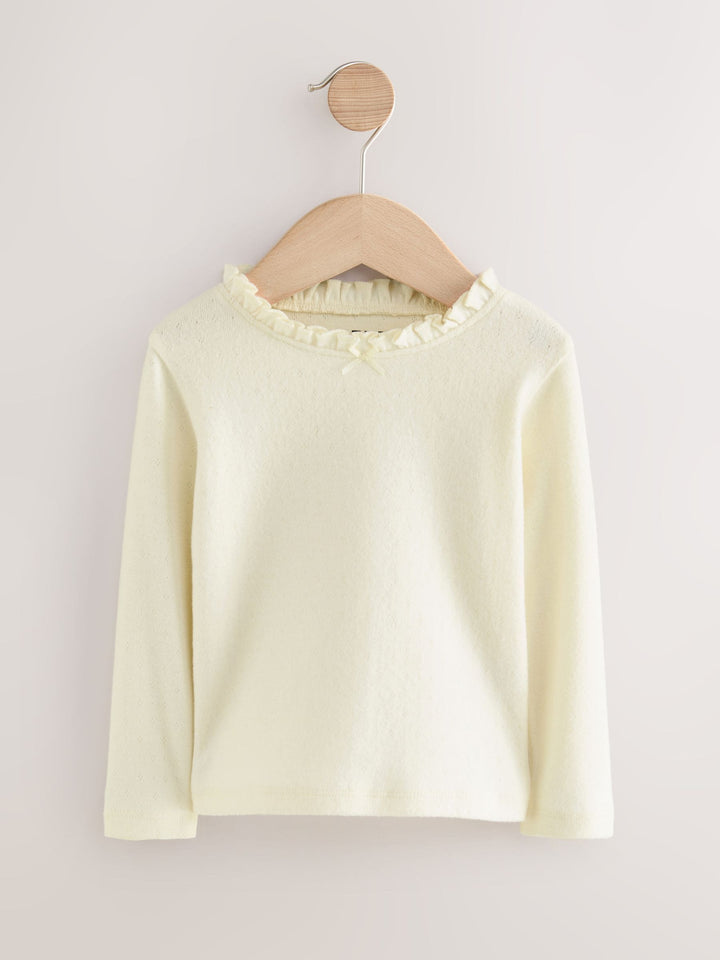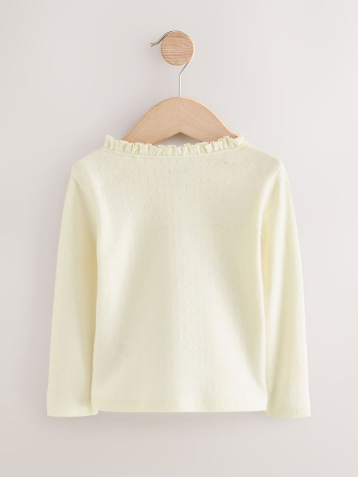 Ecru White Long Sleeve Pointelle T-Shirt (3mths-7yrs)