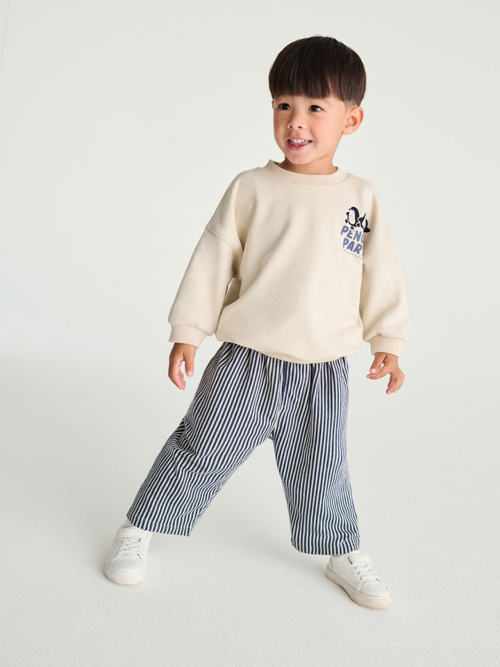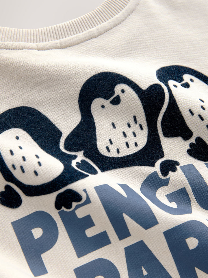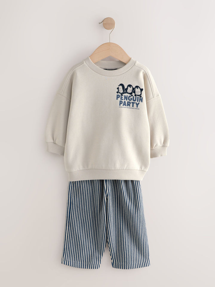 Ecru White Penguin Single Sweatshirt And Stripe Joggers Set (3mths-7yrs)