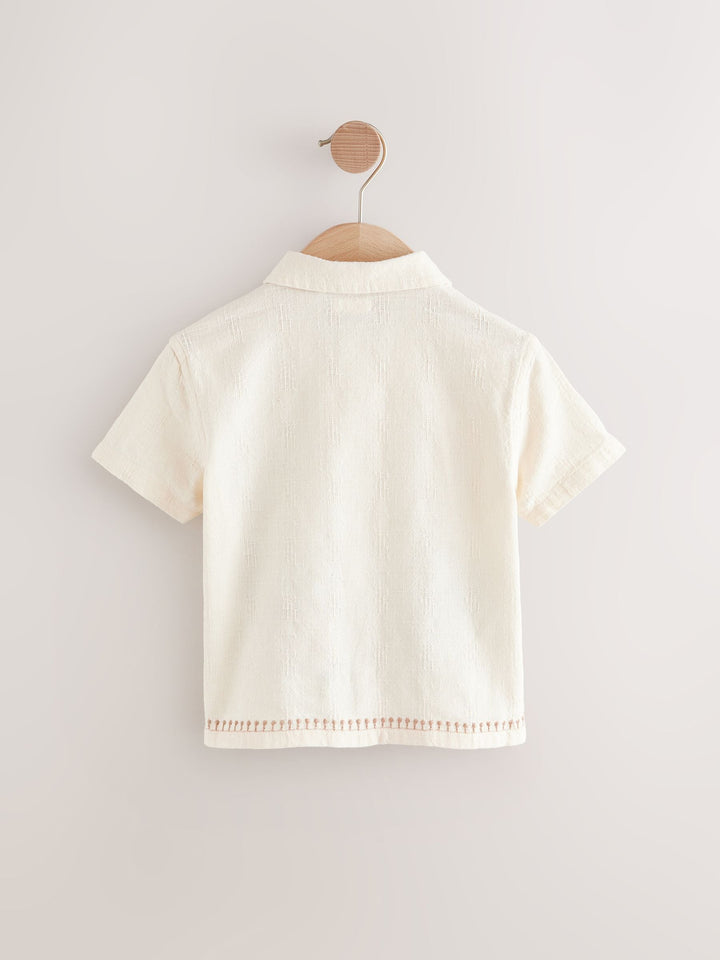 Ecru White Short Sleeve Embroidered 100% Cotton Shirt (3mths-7yrs)
