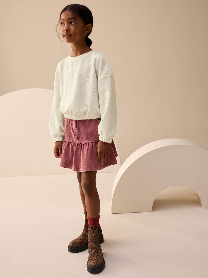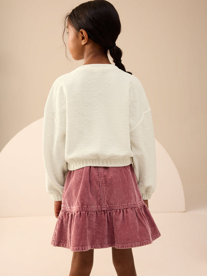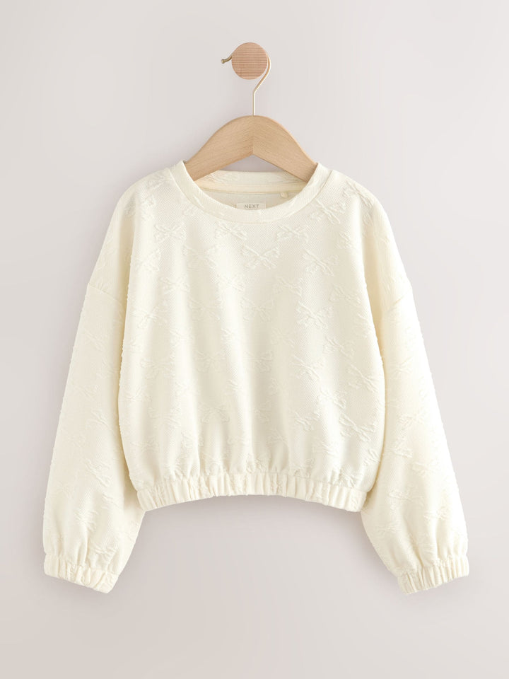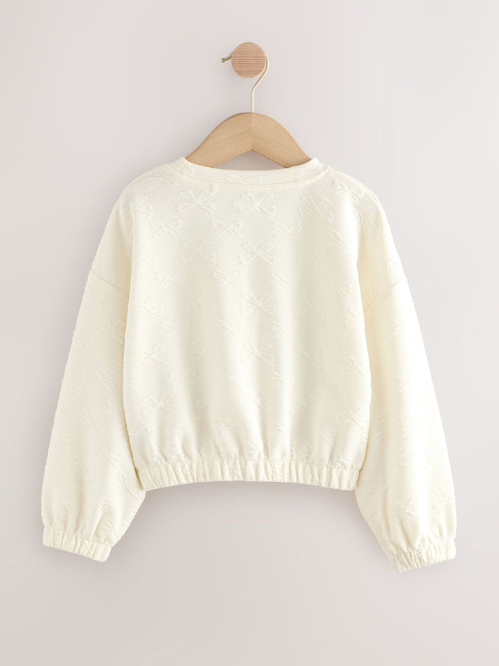 Ecru White Textured Bow Long Sleeve Top (3-16yrs)
