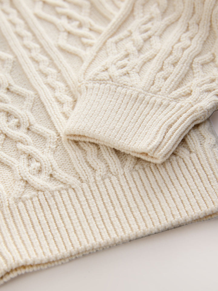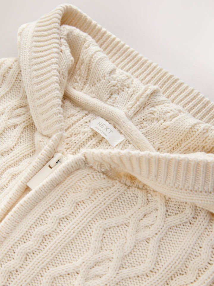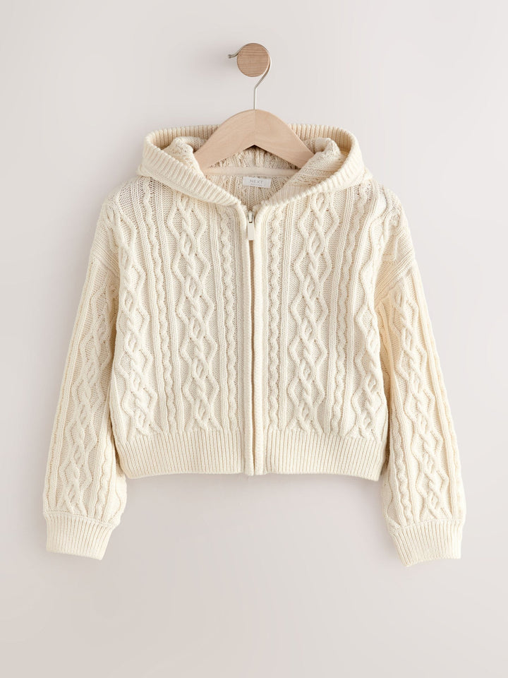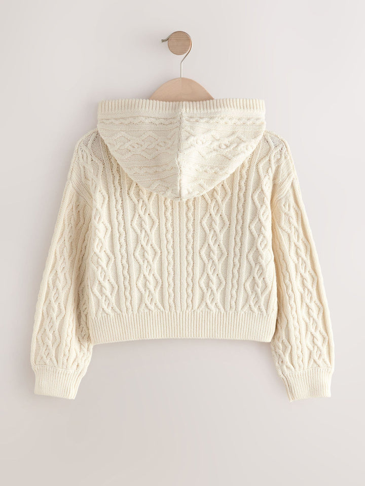 Ecru Zip Through Cable Knit Hoodie (3-16yrs)