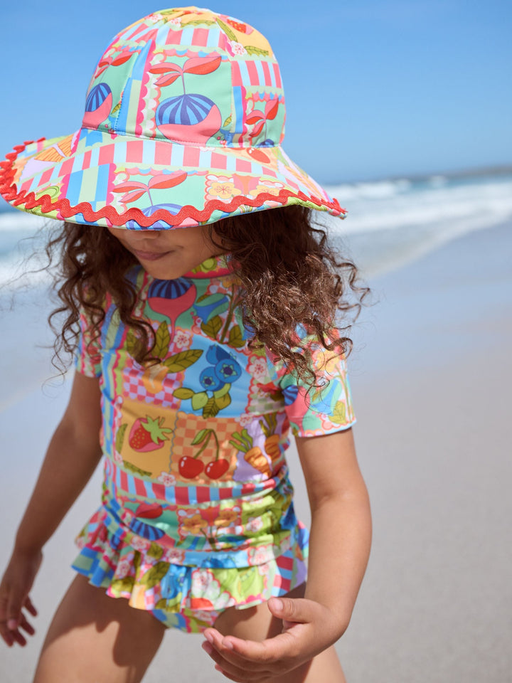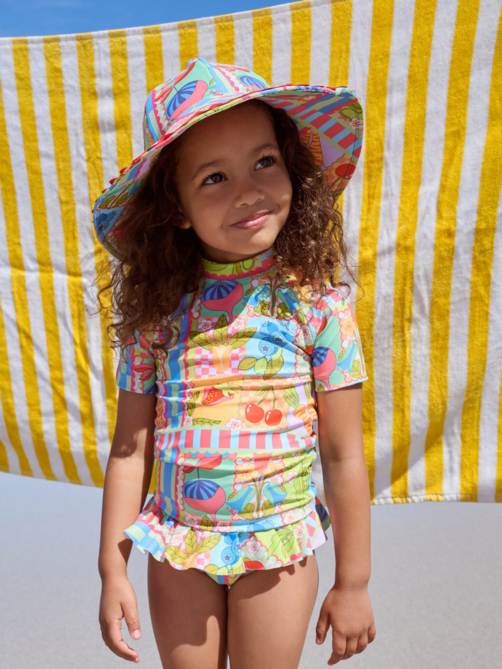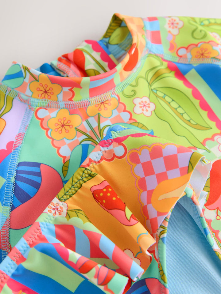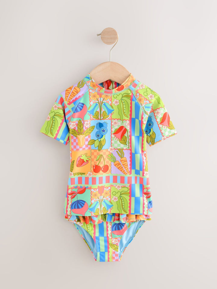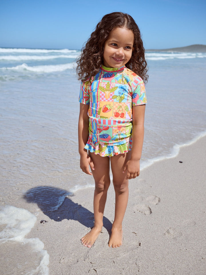 This beach-ready 2-piece set features a short sleeve rash vest with a zip fastening at the back for up to sizes 12-18 months for easy dressing, alongside a pair of cute bottoms with frill detailing. UPF rating of 50+. 2-piece set Short sleeve rash vest Zip fastening up to 12-18 months Frill detail bikini bottoms UPF rating of 50+ Sunsafe Top 82% Recycled polyester, 18% Elastane. Bikini Bottom Main 82% Recycled polyester, 18% Elastane. Lining 92% Recycled polyester, 8% Elastane. Country of Origin: China This fabric will provide protection against solar ultraviolet radiation. It has been independently tested and given a UPF rating of 50+ which blocks more than 97.5% of UV rays. Important Advice: • Sun exposure causes skin damage • Only covered areas are protected • Always use a high protection factor sunscreen on any exposed areas of skin • The protection offered by this fabric may be reduced with use or if stretched or wet • Always rinse in fresh water after each use • Young children should be kept in the shade between 11 and 3 • Don't forget your hat and sunglasses. • Fabric provides UVA +UVB protection from the sun.