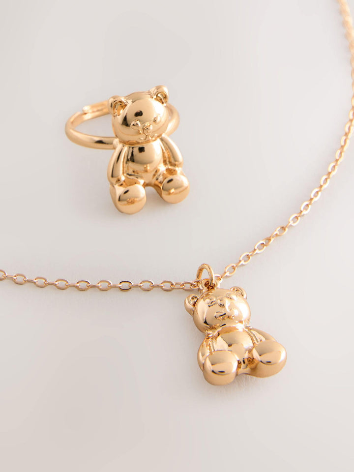 Gold Bear Print Gift Box Jewellery Set