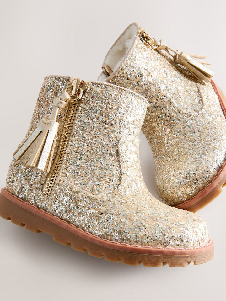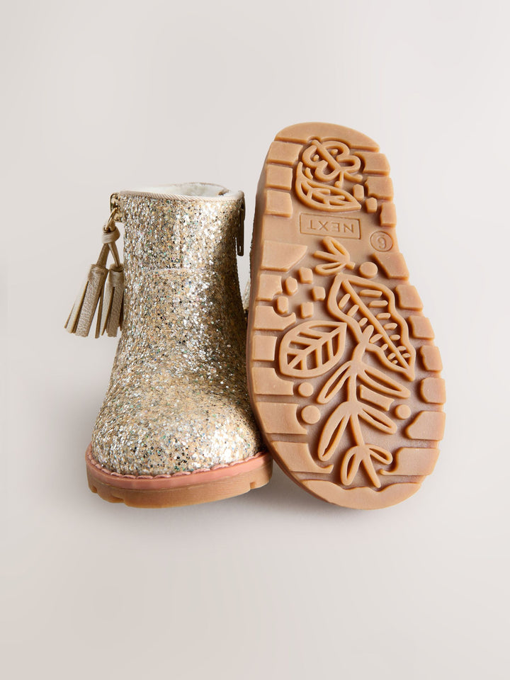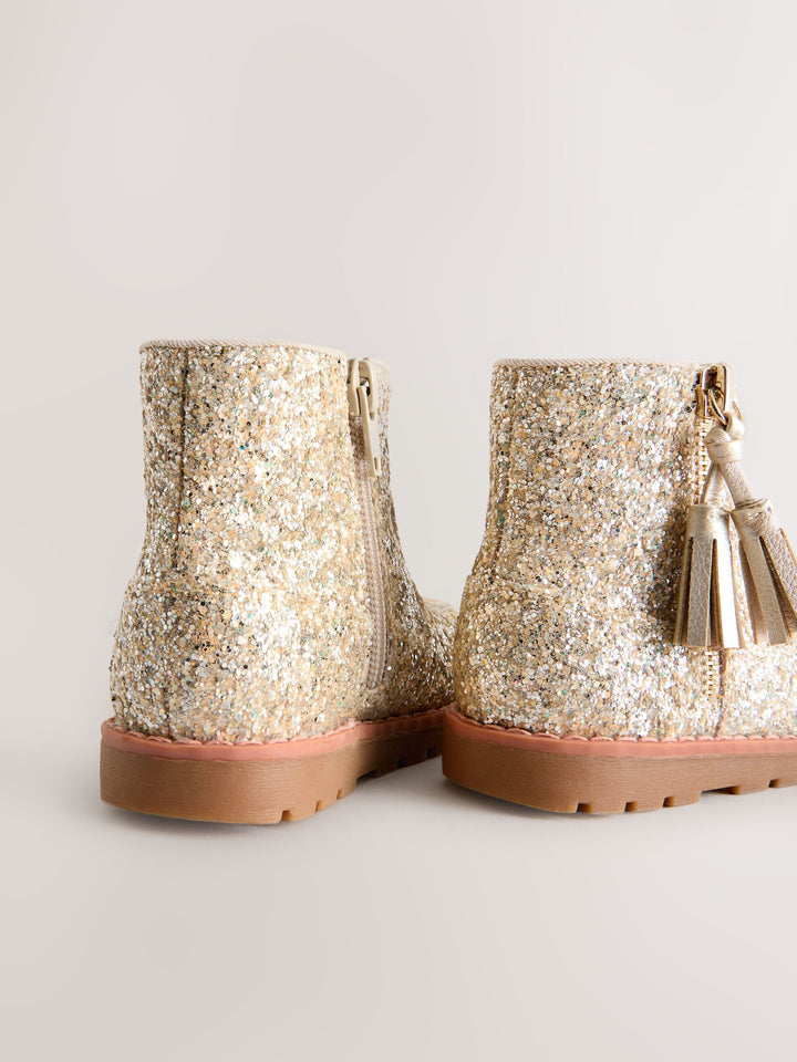 Gold Glitter Wide Fit (G) Chelsea Zip Tassel Ankle Boots