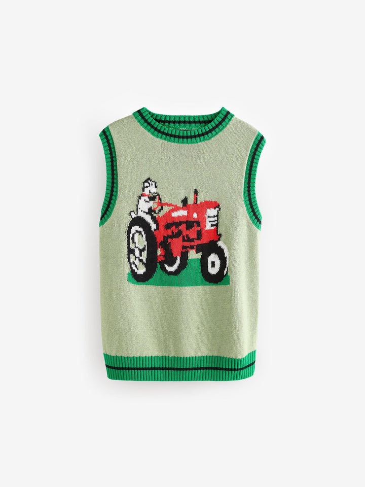 Green Cath Kidston 100% Cotton Knitted Tractor Tank (3mths-7yrs)
