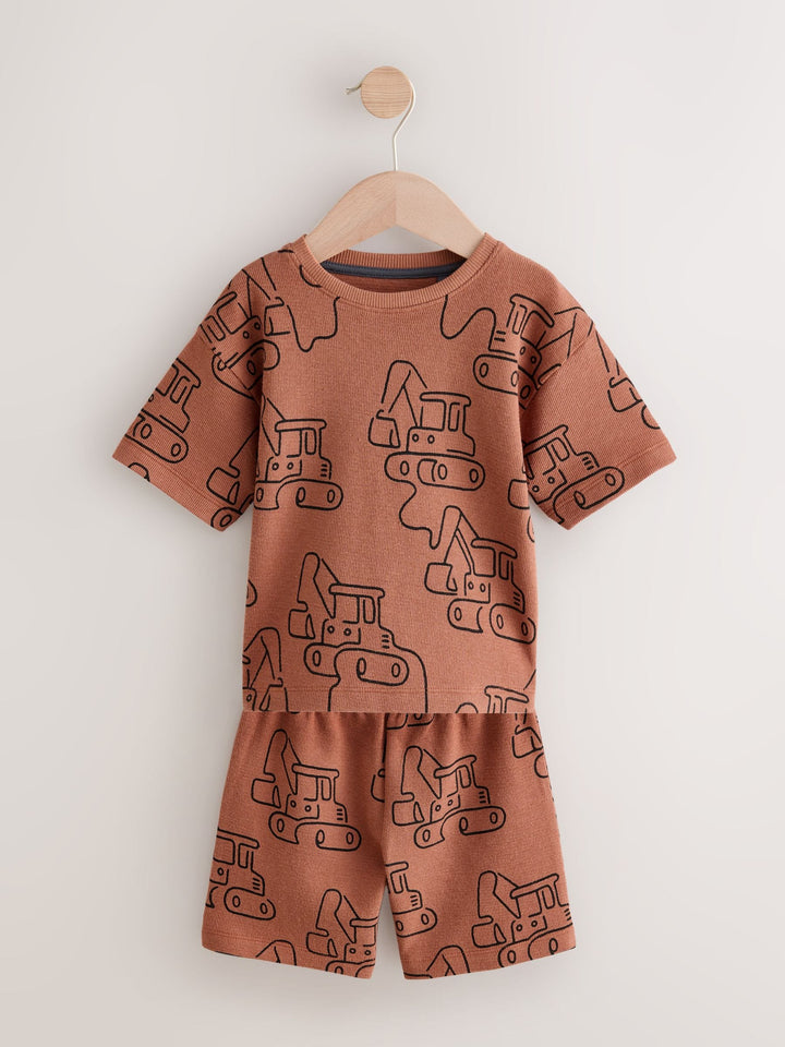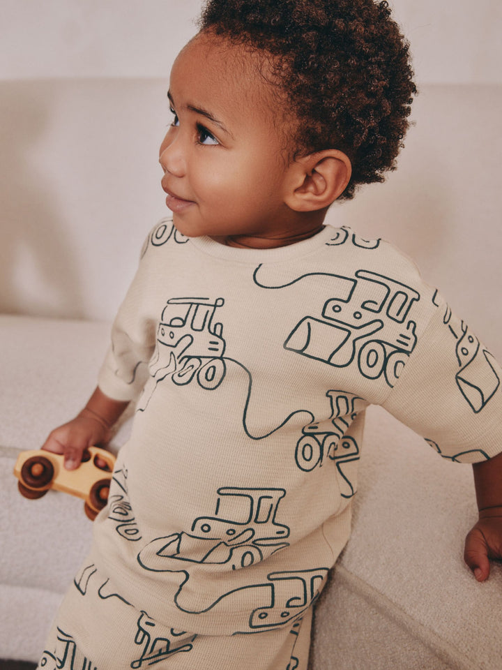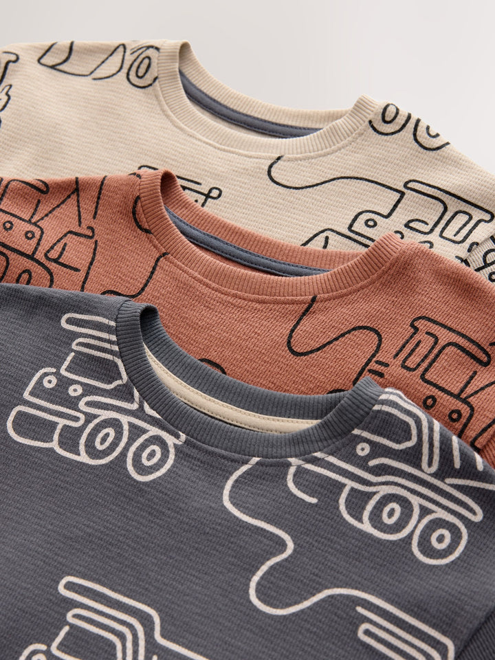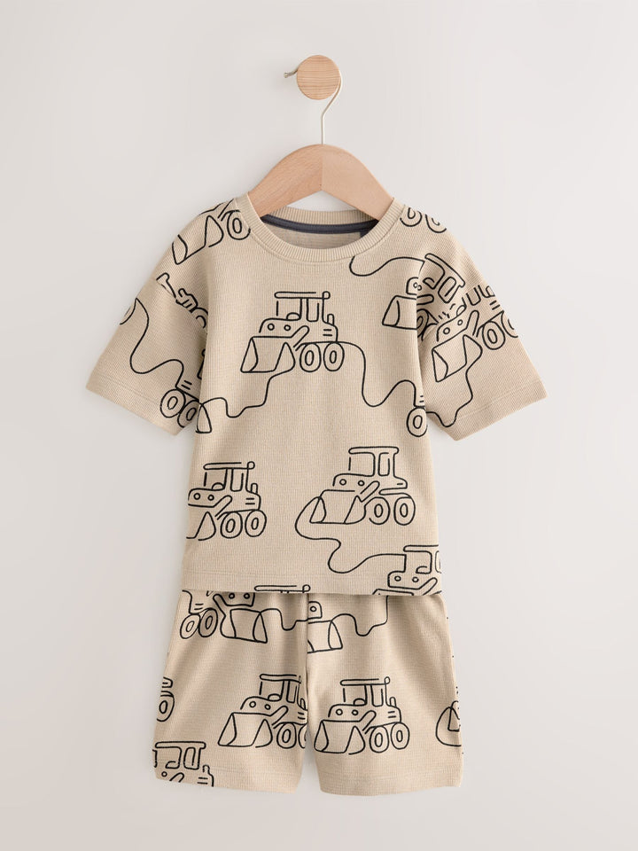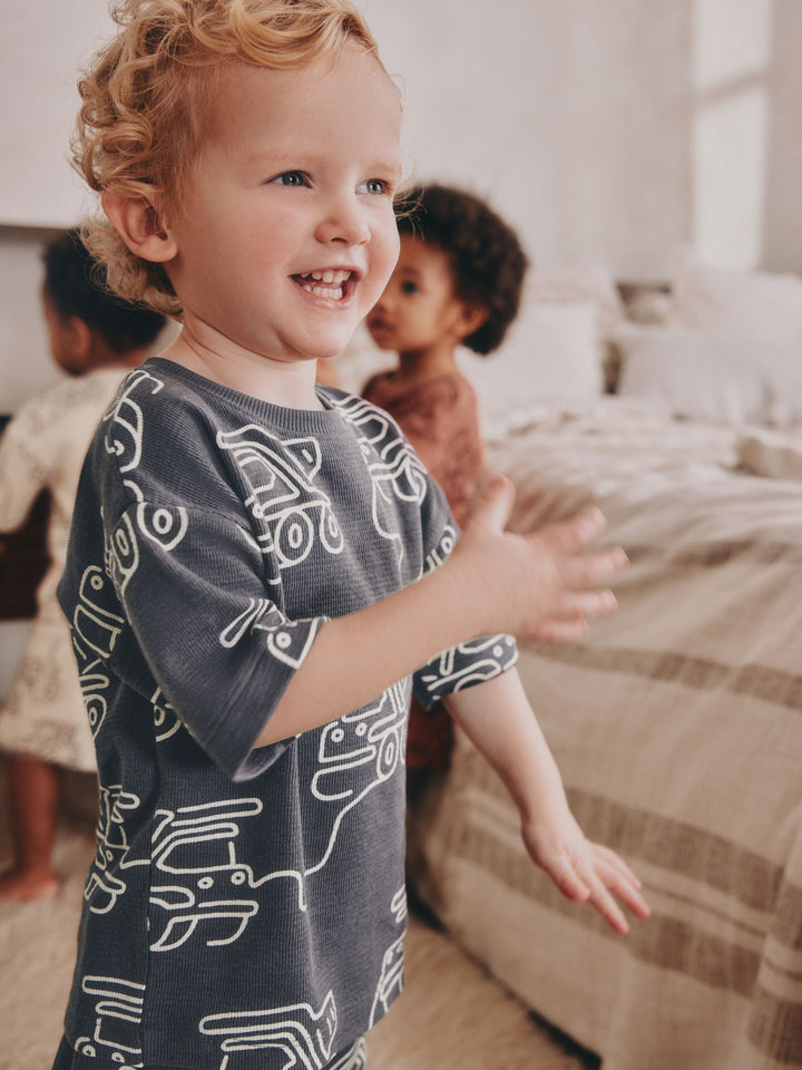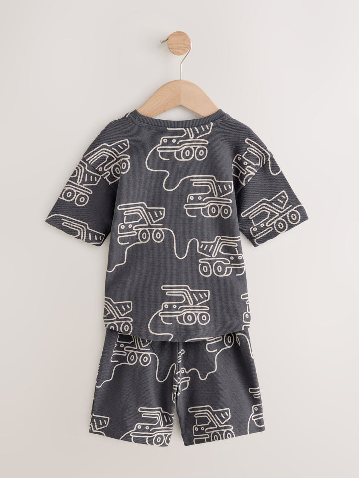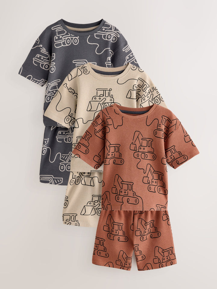 Green/Grey Linear Vehicle Short Pyjamas 3 Pack (9mths-10yrs)