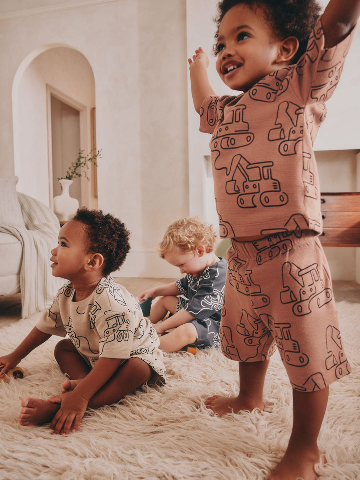 Add a pop of colour to their pyjama drawer, with this 3-pack set. In comfortable cotton-blend fabrics, you can mix and match the short sleeve t-shirts with each pair of shorts, decorated in a choice of colours and graphics. 3-pack Cotton-blend Short sleeve t-shirts Matching shorts Machine washable. 3 x Pyjama Top and 3 x Pyjama Bottom 100% Cotton. Country of Origin: Bangladesh Warning: Keep away from fire and flames.