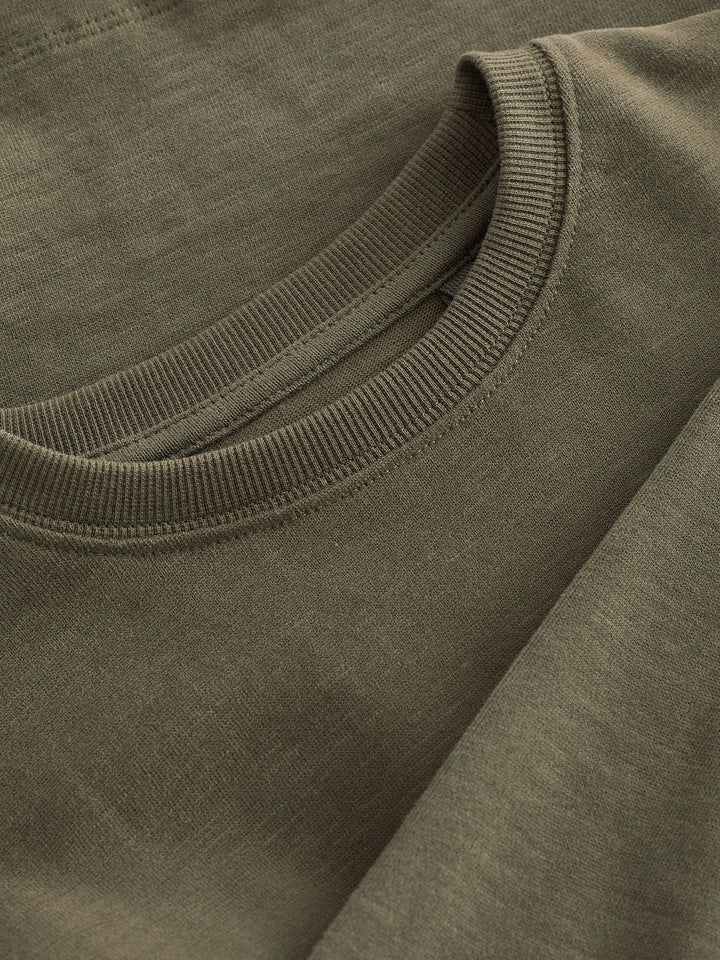 An absolute wardrobe essential for your little one to wear alone or layered up when it gets chilly. Made from soft and breathable cotton, the long sleeve, crew neck top in green khaki delivers a regular fit and will keep them comfortable throughout the day. Cosy and comfortable 230gsm Sueded Single Jersey Wardrobe staple Machine washable. 100% Cotton. Country of Origin: Bangladesh