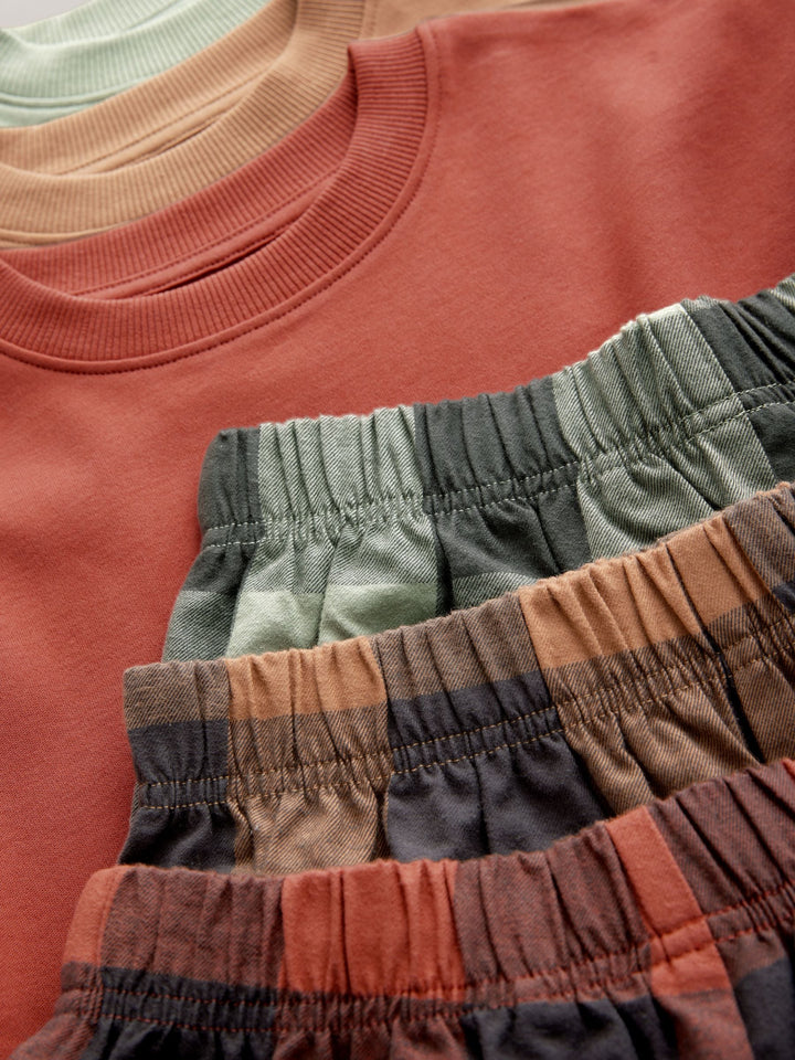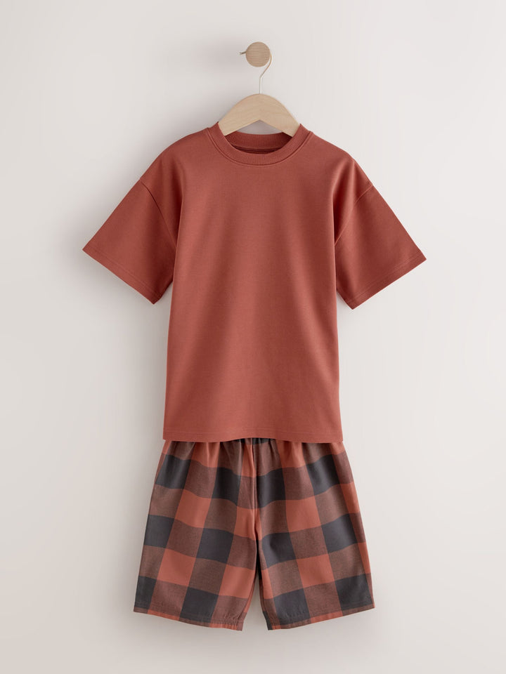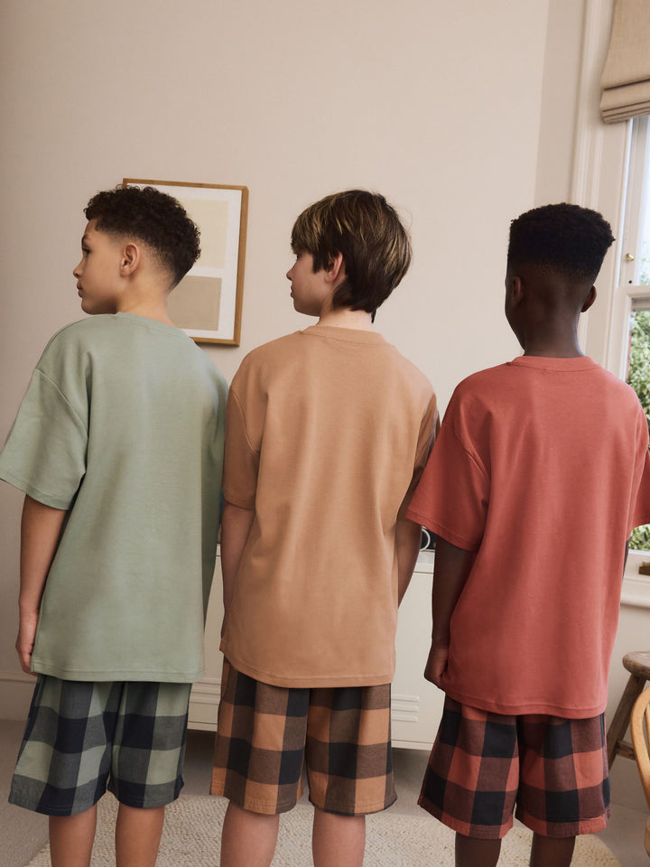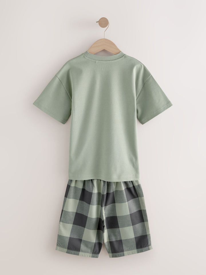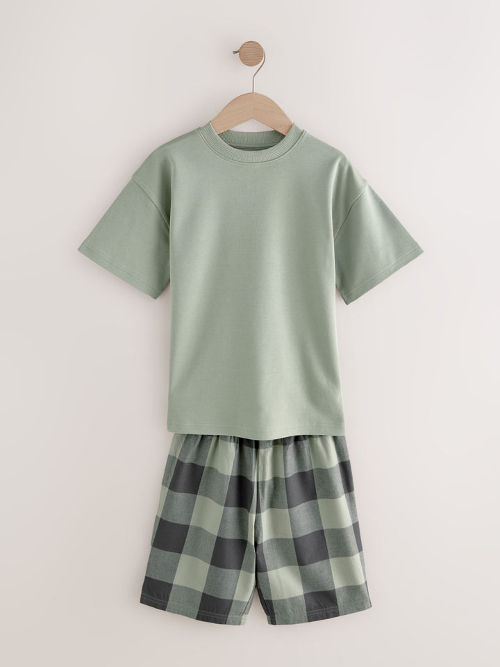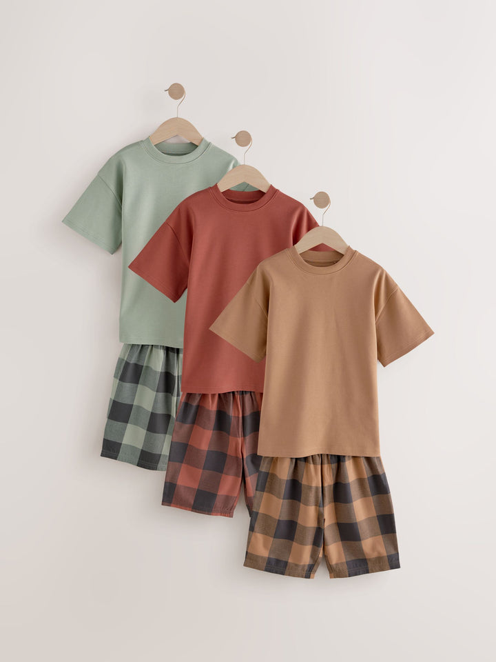 Green/Orange Woven Check Short Pyjamas 3 Pack (3-16yrs)