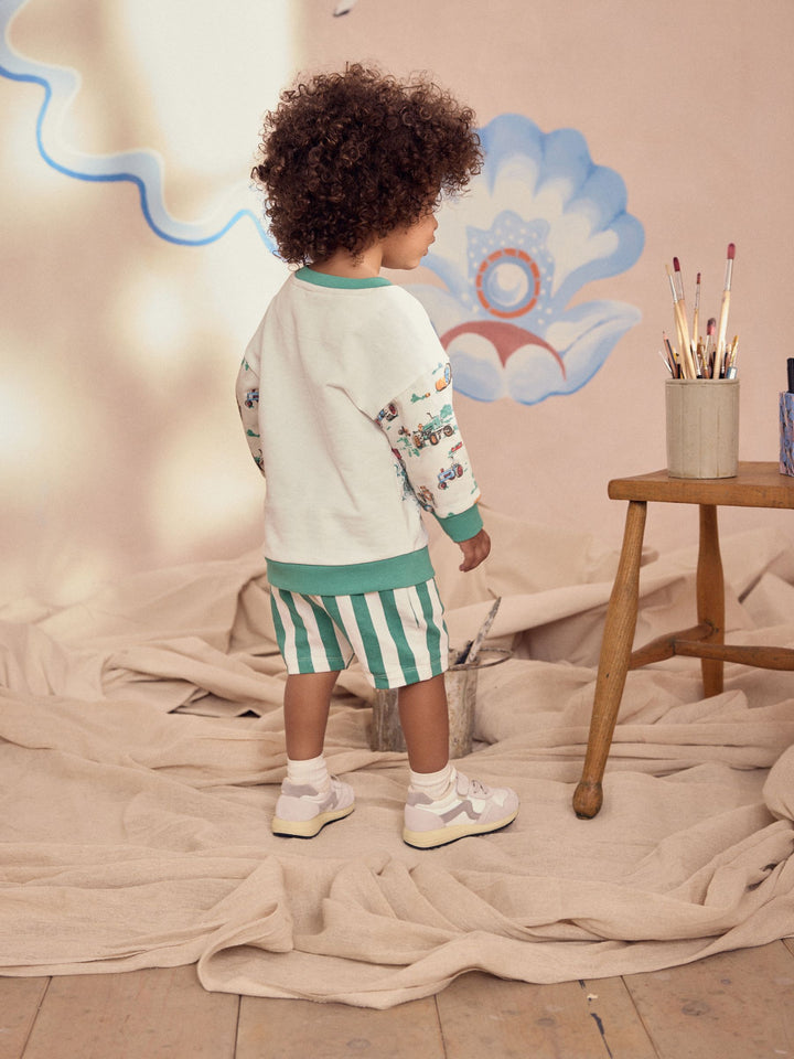 Green/White Cath Kidston Long Sleeve Sweatshirt & Stripe Shorts Set (3mths-7yrs)