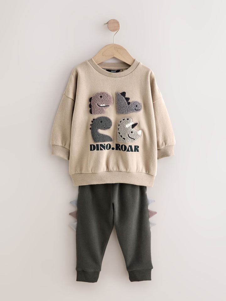 Grey and Charcoal Dinosaur Spike Single Sweatshirt and Joggers Set (3mths-7yrs)