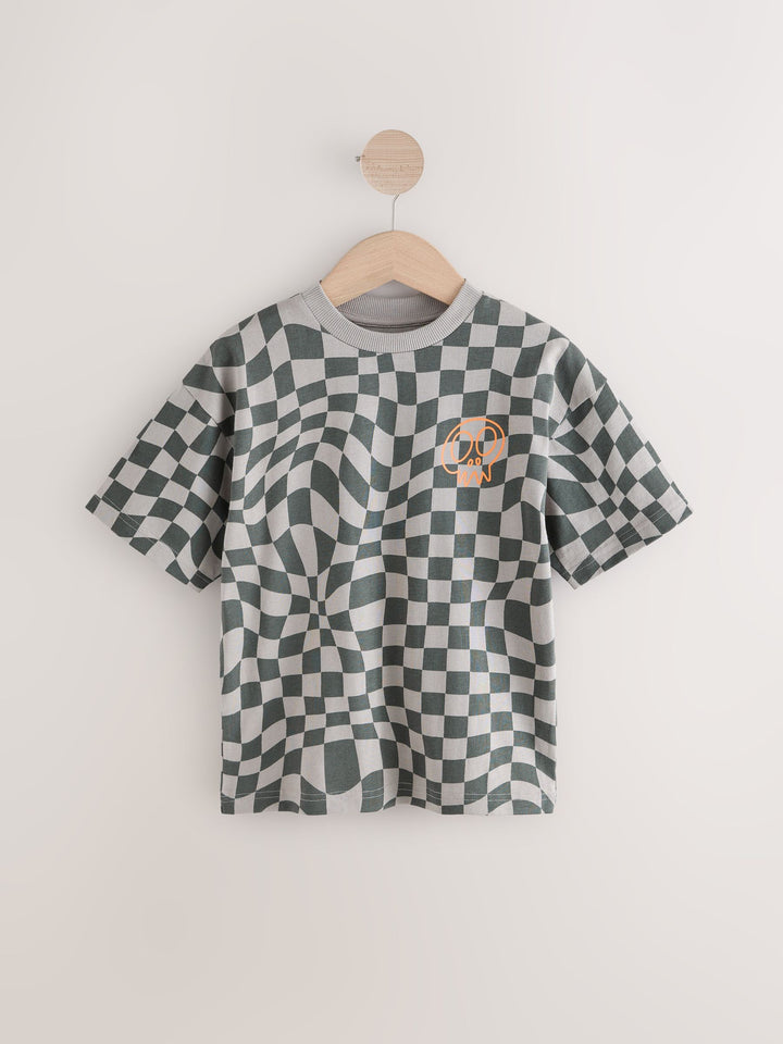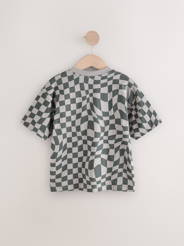 Grey Checkerboard Relaxed Fit Short Sleeve Graphic Print T-Shirt (3-16yrs)