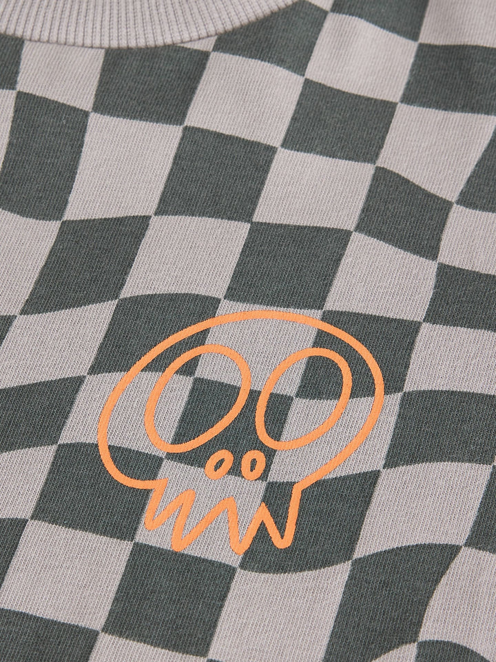 Add to their cool kid style with our relaxed fit grey checkerboard short sleeve t-shirt. With an eye-catching design and comfortable relaxed fit, they'll look as cool as they feel. 100% cotton Graphic print t-shirt Relaxed fit Short sleeves Comfortable fabric Machine washable. 100% Cotton. Country of Origin: India