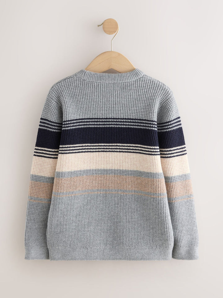 Grey Colourblock Stripe Crew Neck Knitted Jumper (3-16yrs)