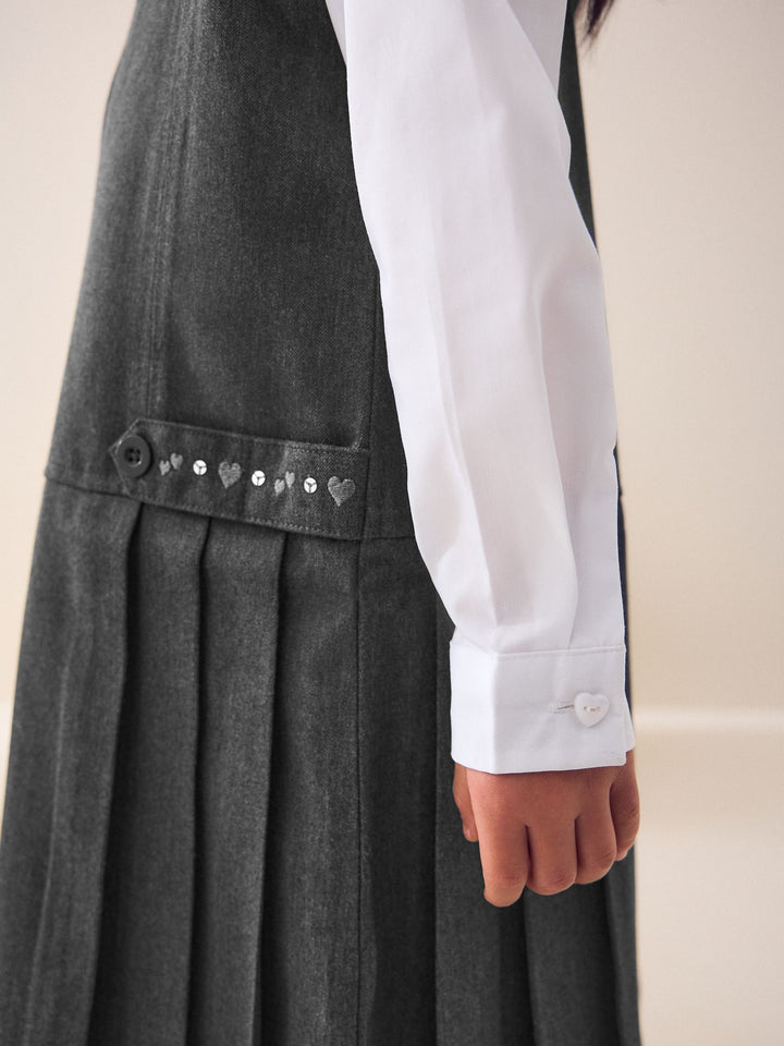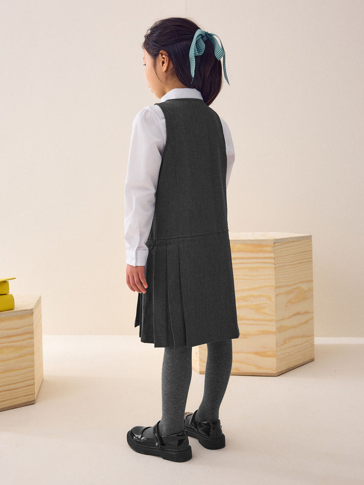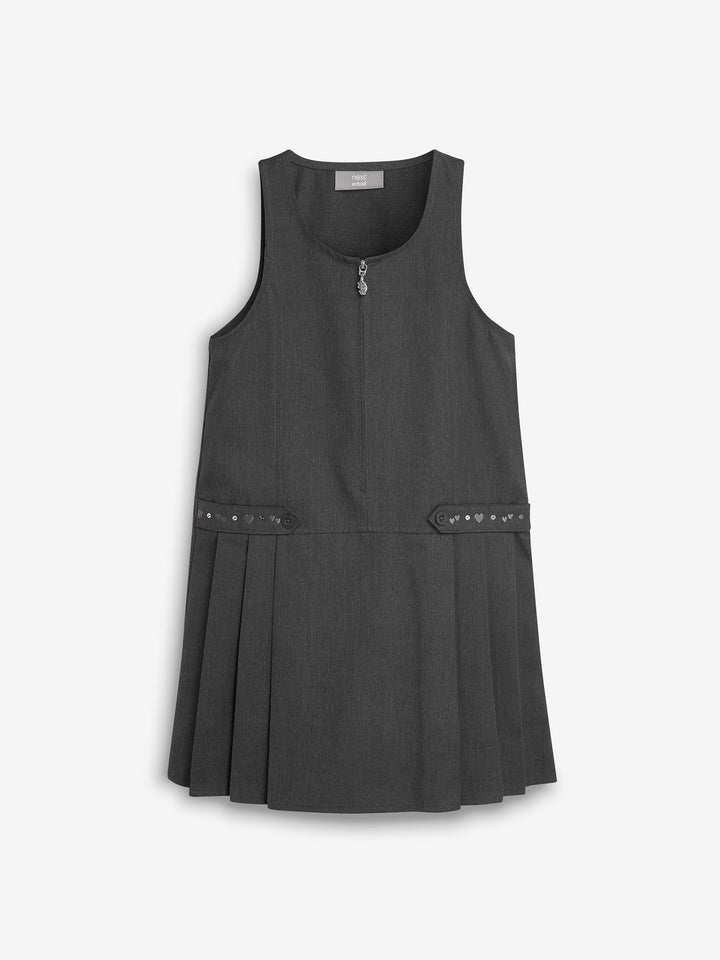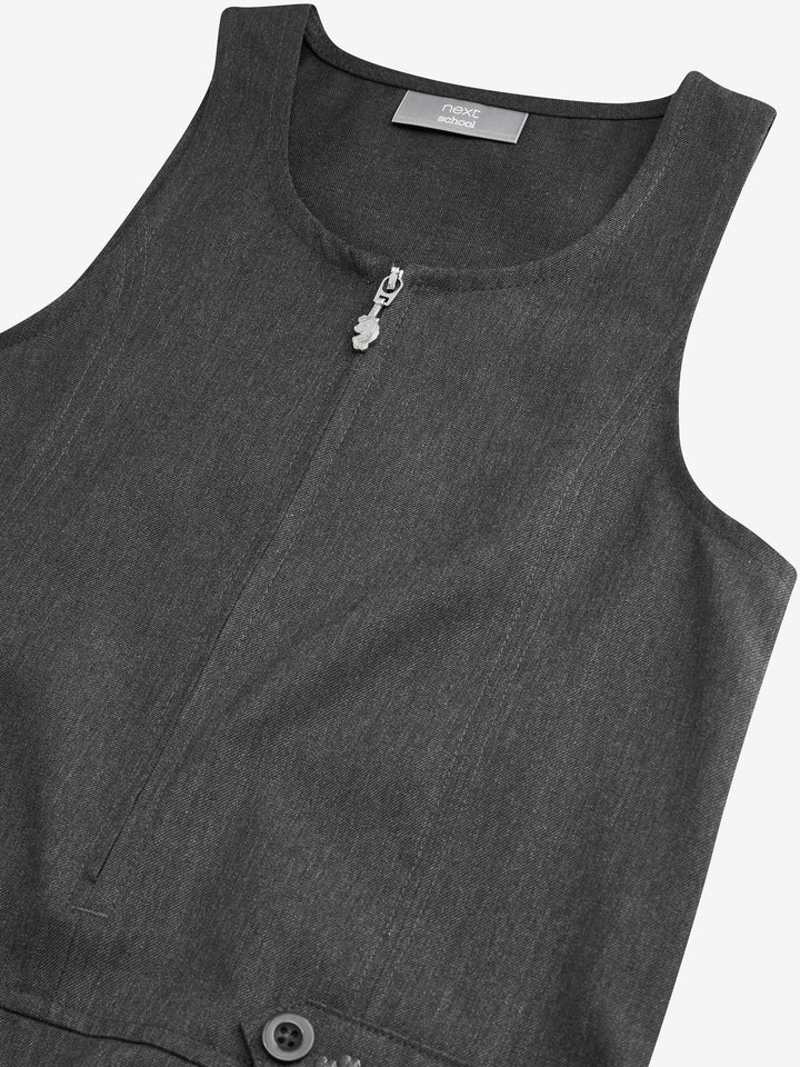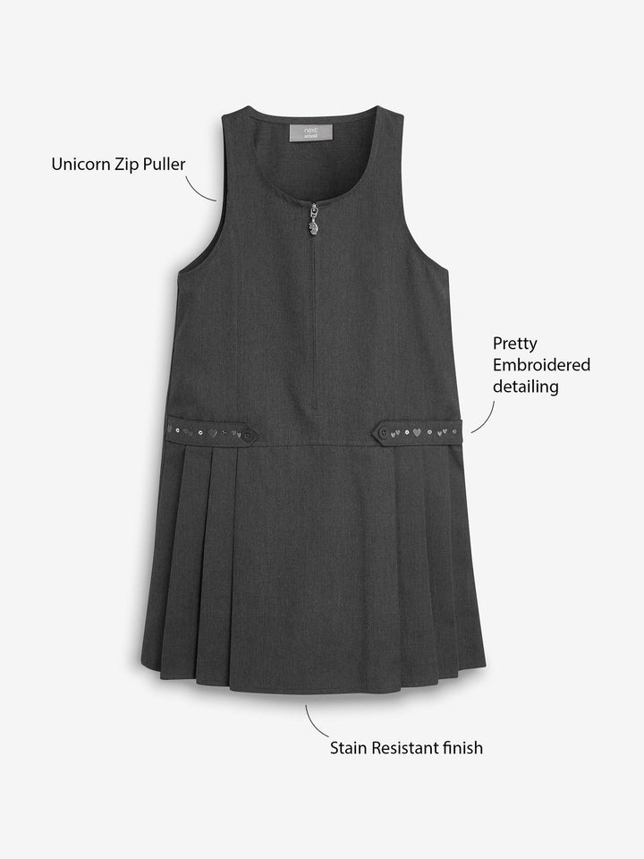 Grey Embroidered Zip Front Pinafore School Dress (3-14yrs)