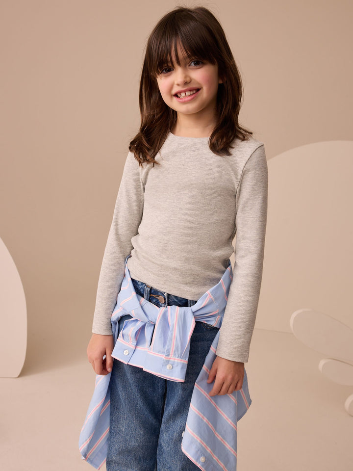 Grey Long Sleeve Ribbed Top (3-16yrs)